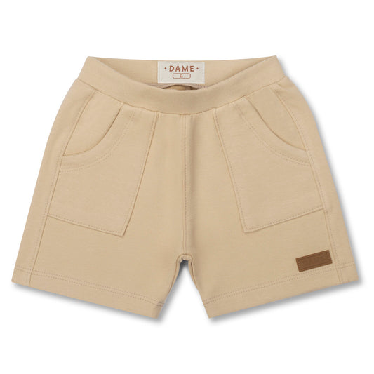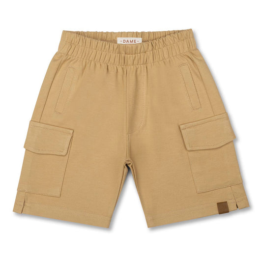 Conjunto Infantil Camiseta Algodão Teddy Remos Off e Bermuda Ponto Roma Bolsos Cargo Bege - Dame