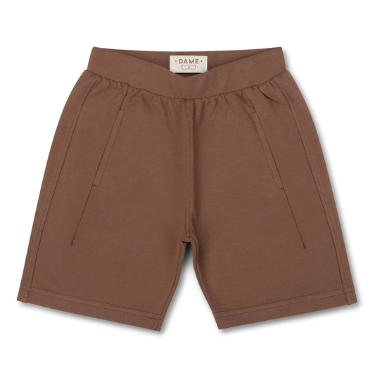 Conjunto Infantil Camiseta Algodão Teddy Remos Off e Bermuda Moletom Bolso Embutido Chocolate - Dame