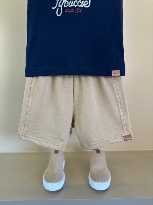 Conjunto Infantil T-Shirt Boat e Bermuda Bege - Youccie