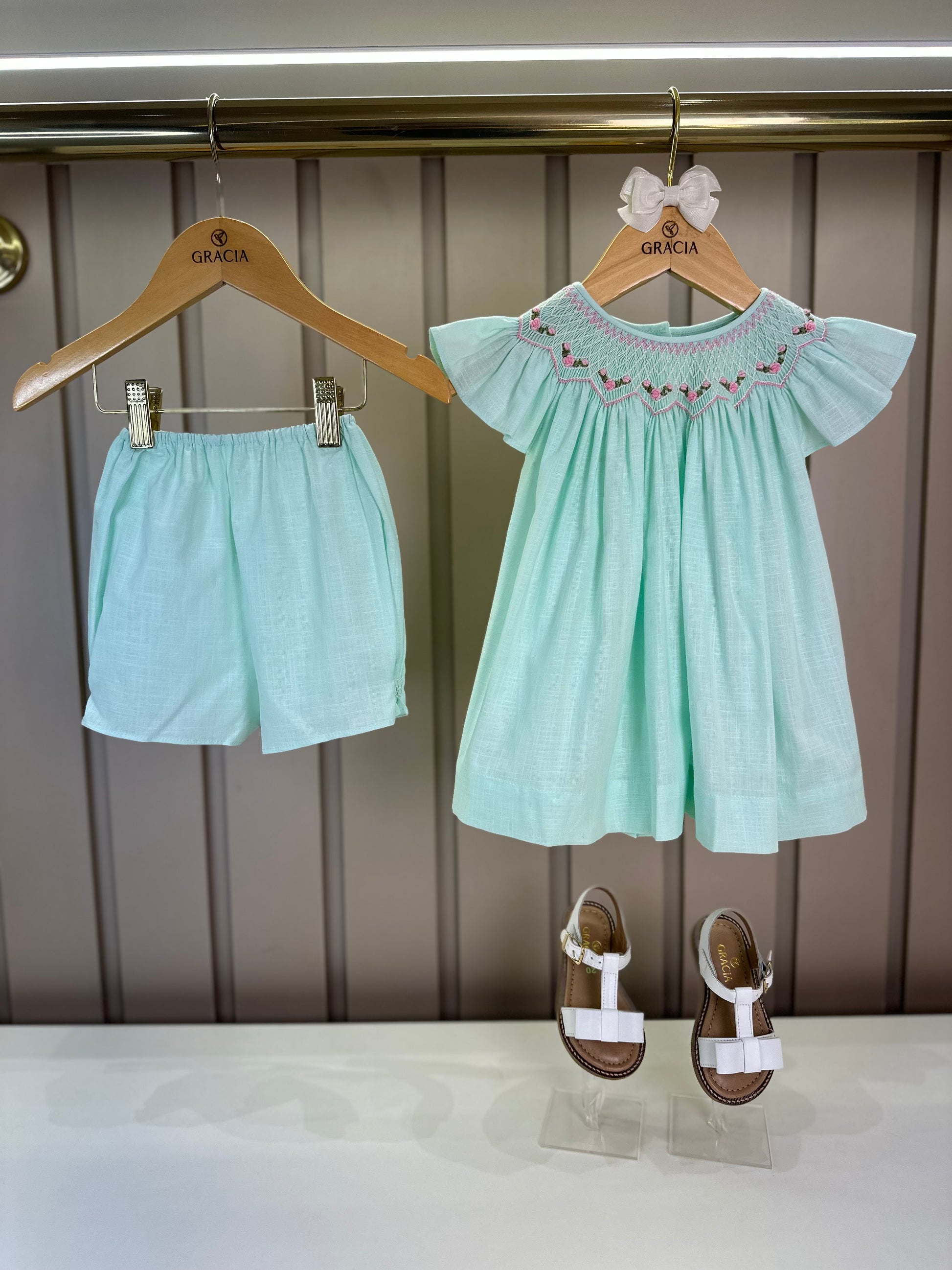 Batinha em algodão 100% para bebês, confeccionada com tecido macio e respirável que proporciona máximo conforto durante o dia. O bordado Serena na cor verde claro adiciona elegância delicada ao visual, enquanto a qualidade premium do material garante durabilidade mesmo após múltiplas lavagens. Ideal para ocasiões especiais ou uso cotidiano, esta peça combina sofisticação e praticidade. Perfeita para presentear ou completar o guarda-roupa do seu bebê com estilo refinado.