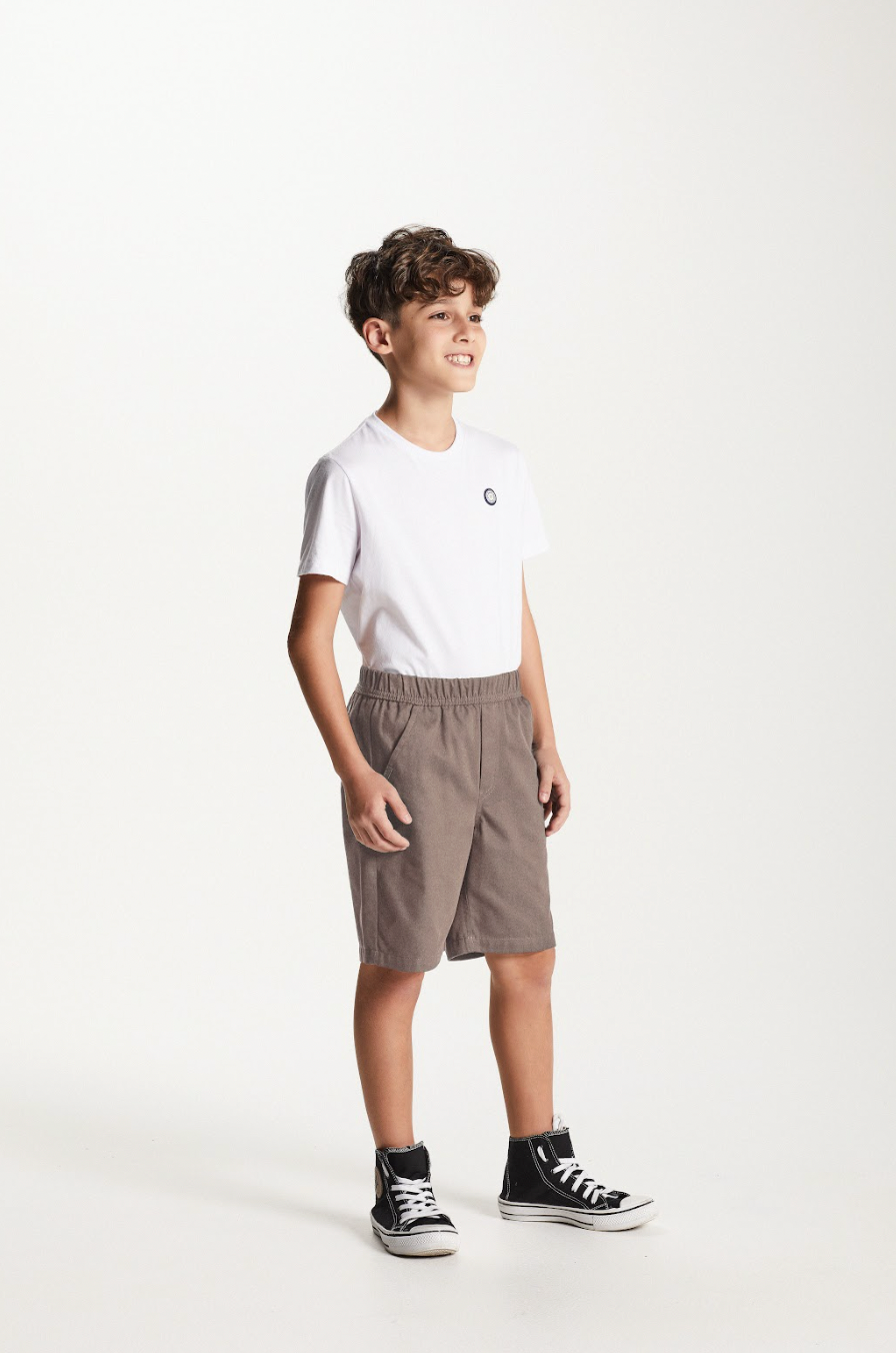 Bermuda Infantil Sarja Confort Bege - Um Mais Um PRÉ-VENDA