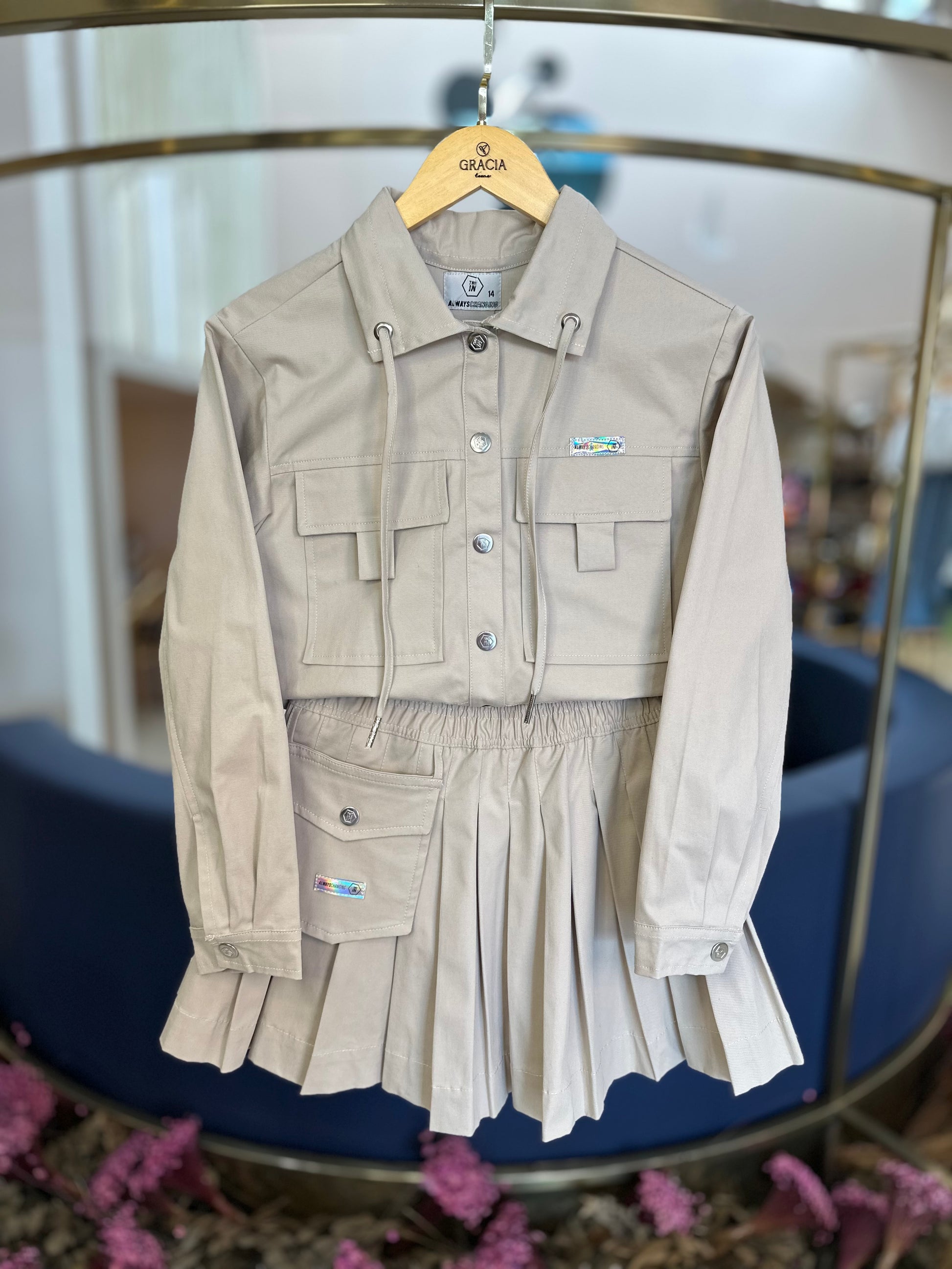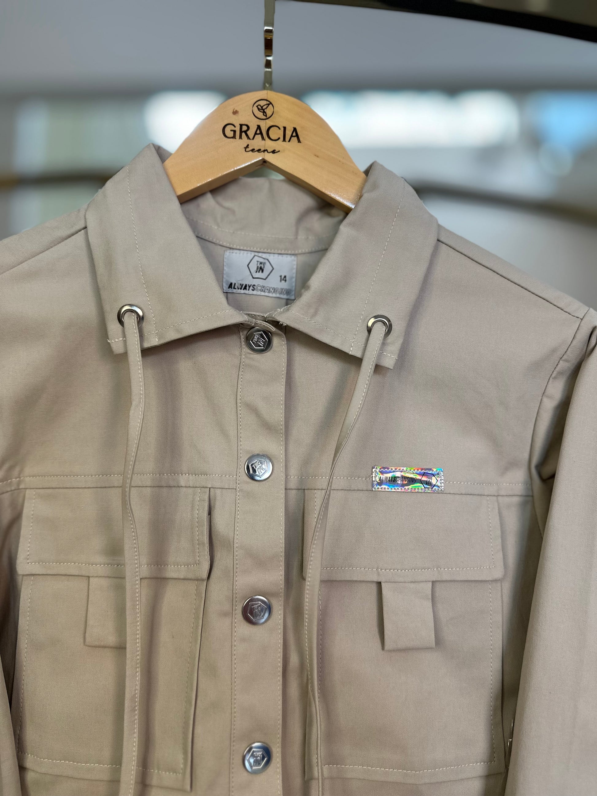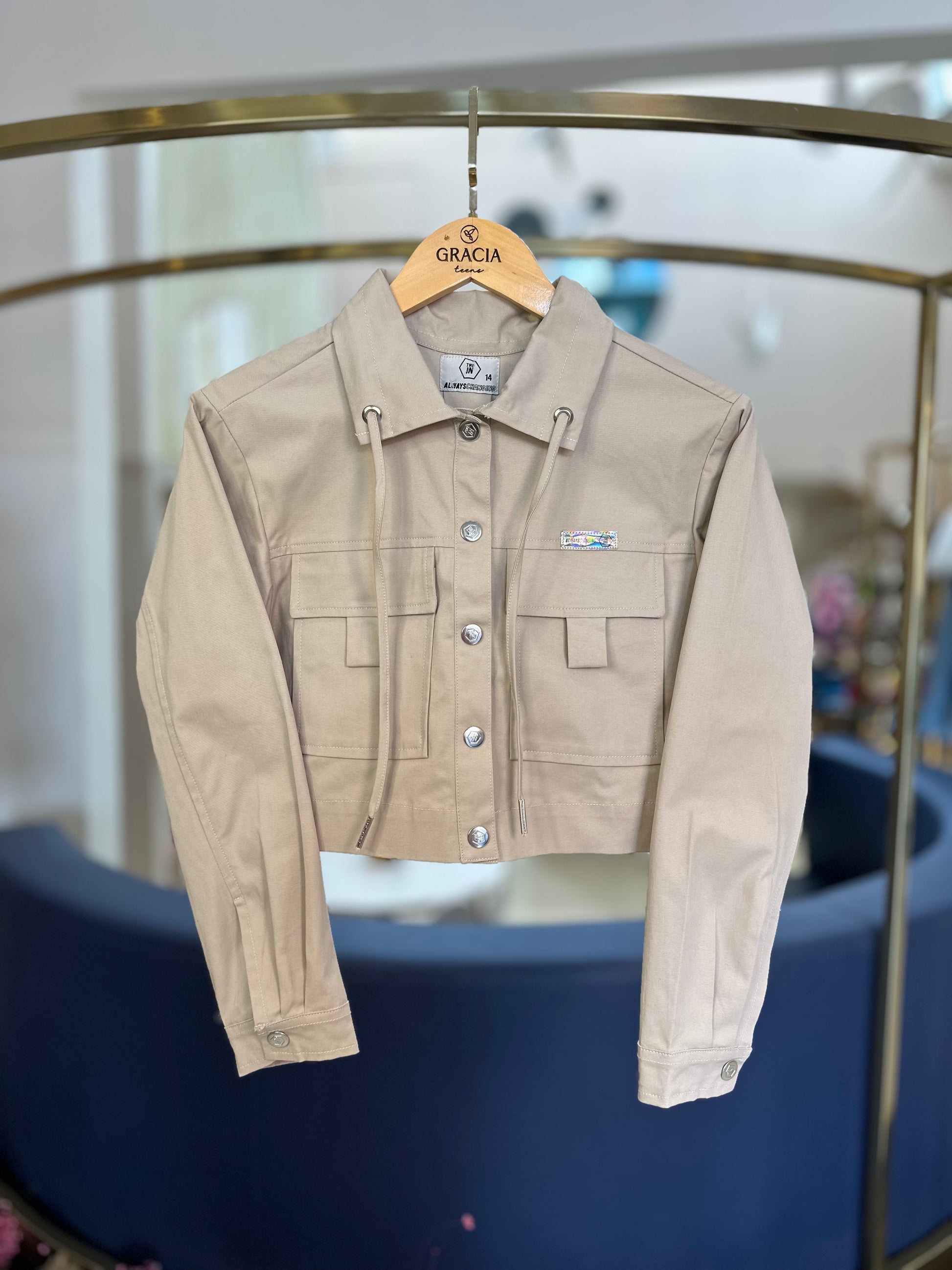 Casaco Cropped Teen Sarja de Algodão Areia - Two In