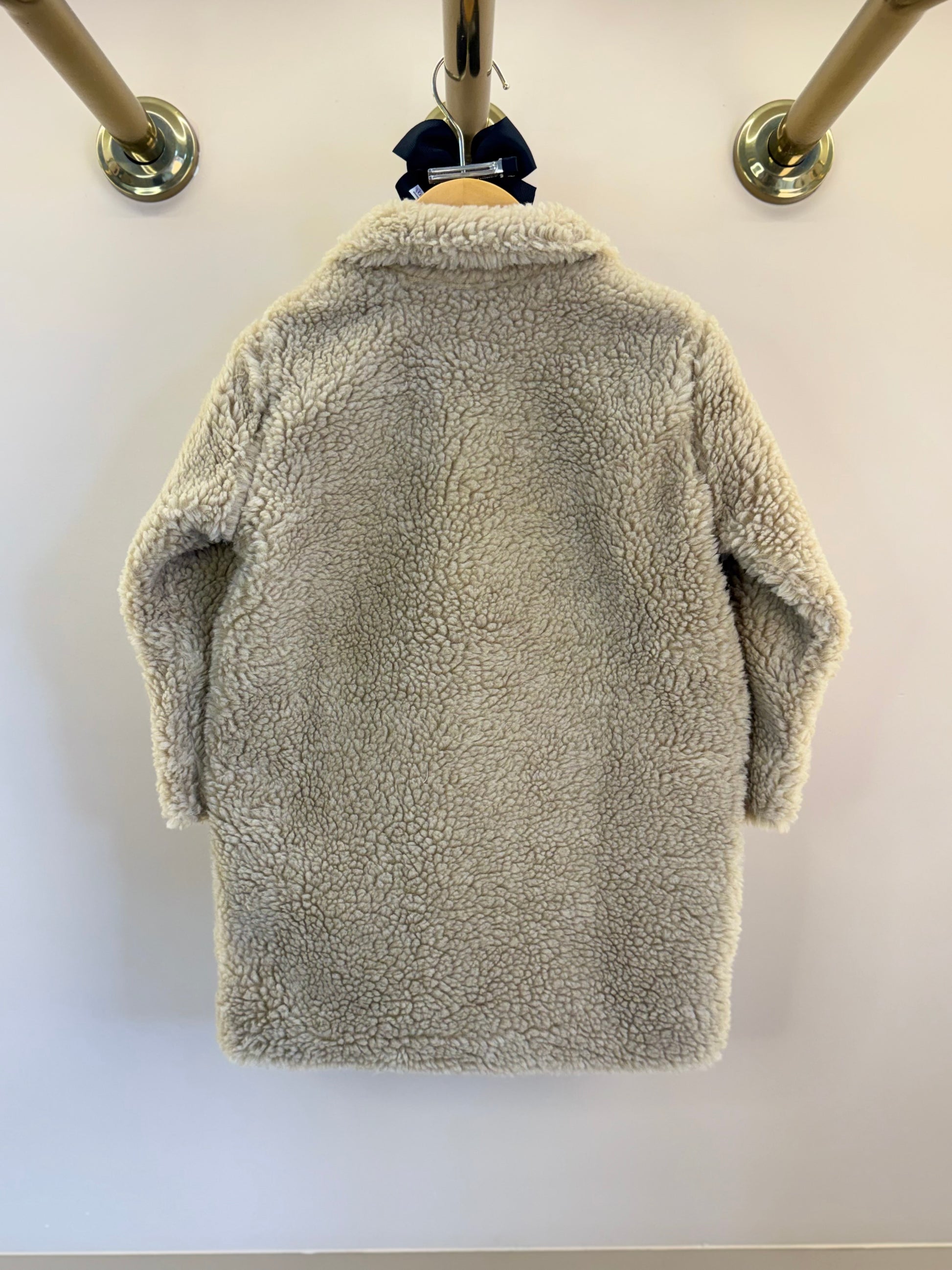 Casaco infantil em pele de carneiro com design sofisticado e aconchegante. Apresenta patches decorativos e laços que adicionam um toque de elegância ao visual. Ideal para manter as crianças aquecidas com estilo durante os dias mais frios. Confeccionado com materiais de qualidade, garante conforto e durabilidade. Perfeito para criar looks modernos e charmosos no guarda-roupa infantil.