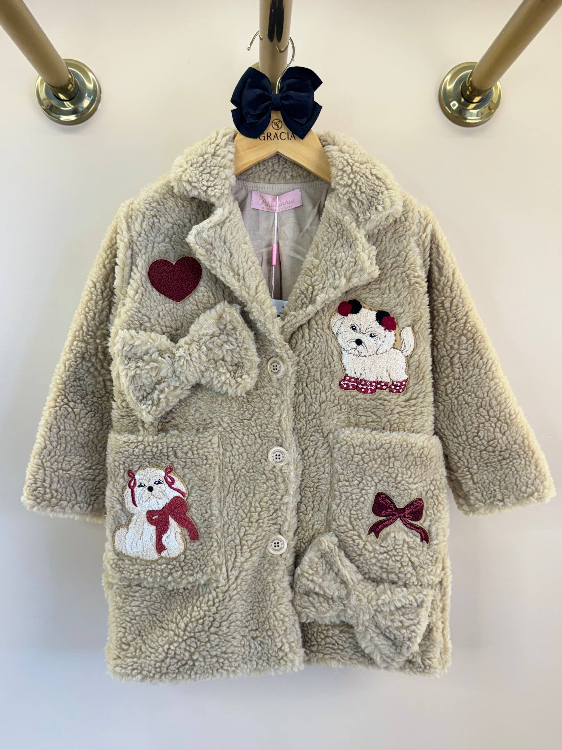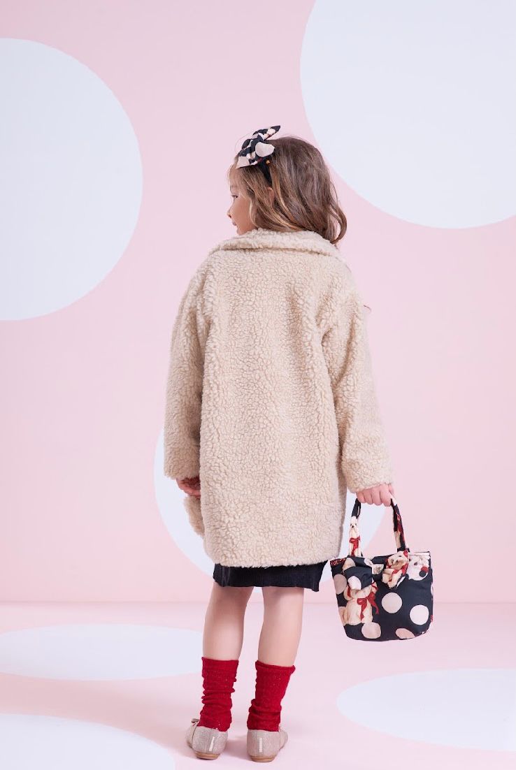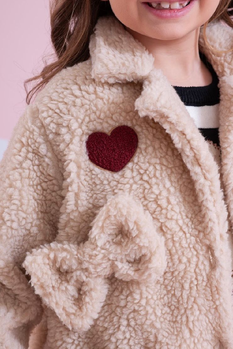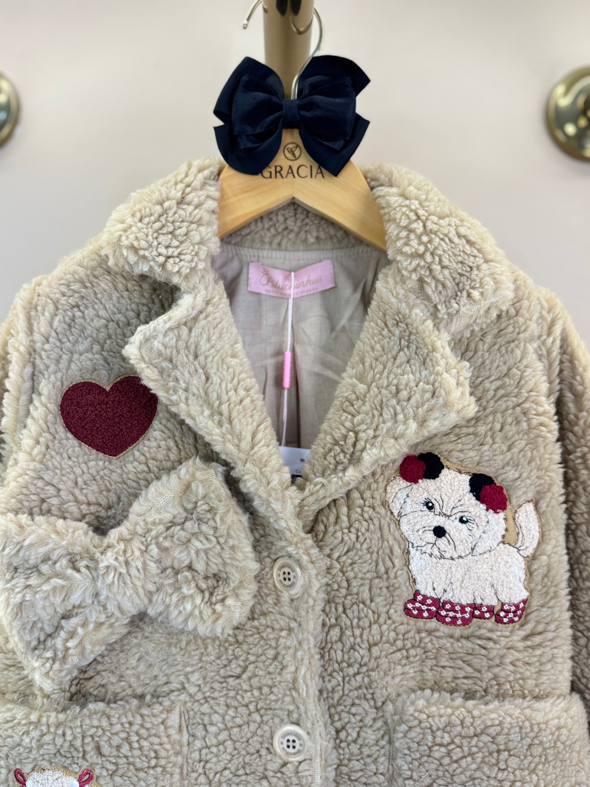 Casaco Infantil Conceito Pele Carneiro Patches e Laços - Pituchinhus