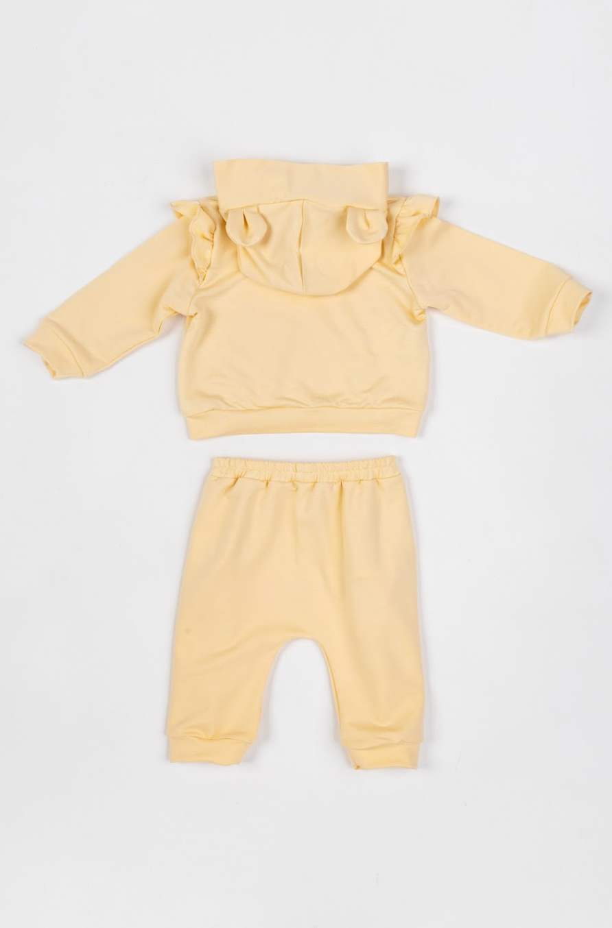 Conjunto de abrigo com capuz e calça em amarelo vibrante, perfeito para manter seu bebê aquecido e confortável. Detalhes de babadinhos adicionam um toque delicado e elegante ao visual. Confeccionado com materiais macios e respiráveis, ideal para o dia a dia. A combinação prática de peças facilita o vestiário do pequeno, enquanto o design moderno acompanha o estilo premium da marca. Perfeito para presentear ou completar o guarda-roupa infantil com qualidade e charme.