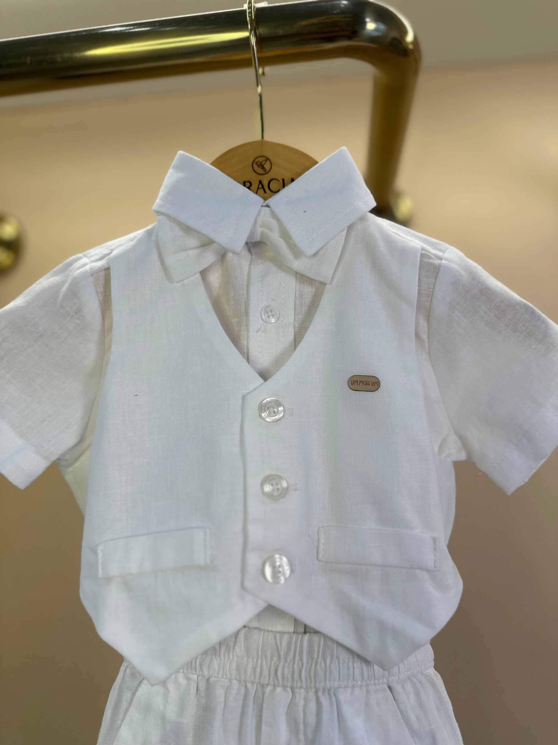 Conjunto Bebê Batizado Camisa-body e Bermuda Linho Misto Off White - Um Mais Um