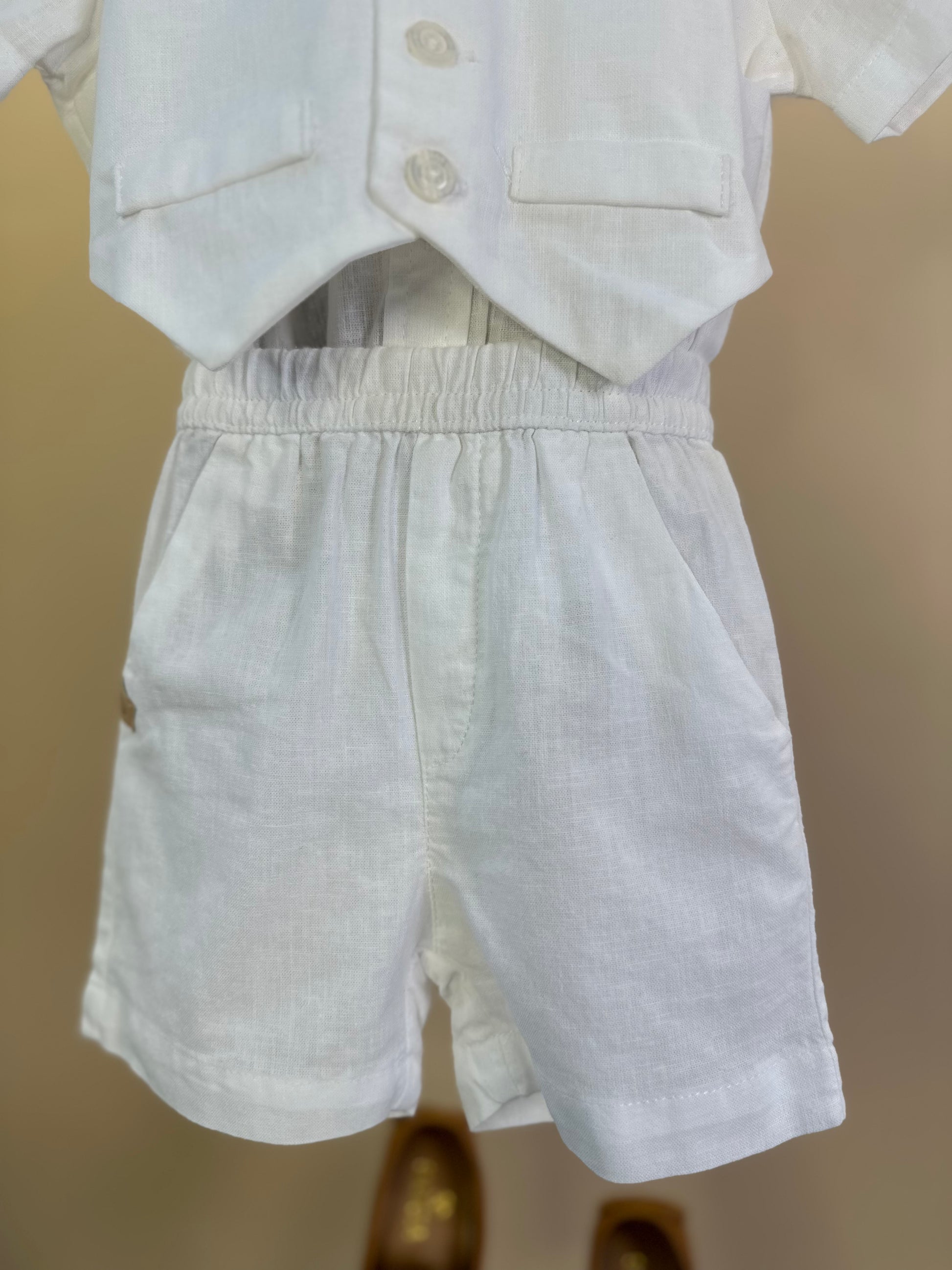 Este conjunto para bebê batizado combina camisa-body e bermuda em linho misto na cor off white, ideal para ocasiões especiais. A peça oferece conforto e elegância, com tecido leve e respirável que mantém a pele delicada do bebê protegida. O design clássico proporciona um visual sofisticado e atemporal, facilitando o uso durante o cerimonial e demais celebrações. Um conjunto pensado para valorizar momentos únicos com estilo e conforto.