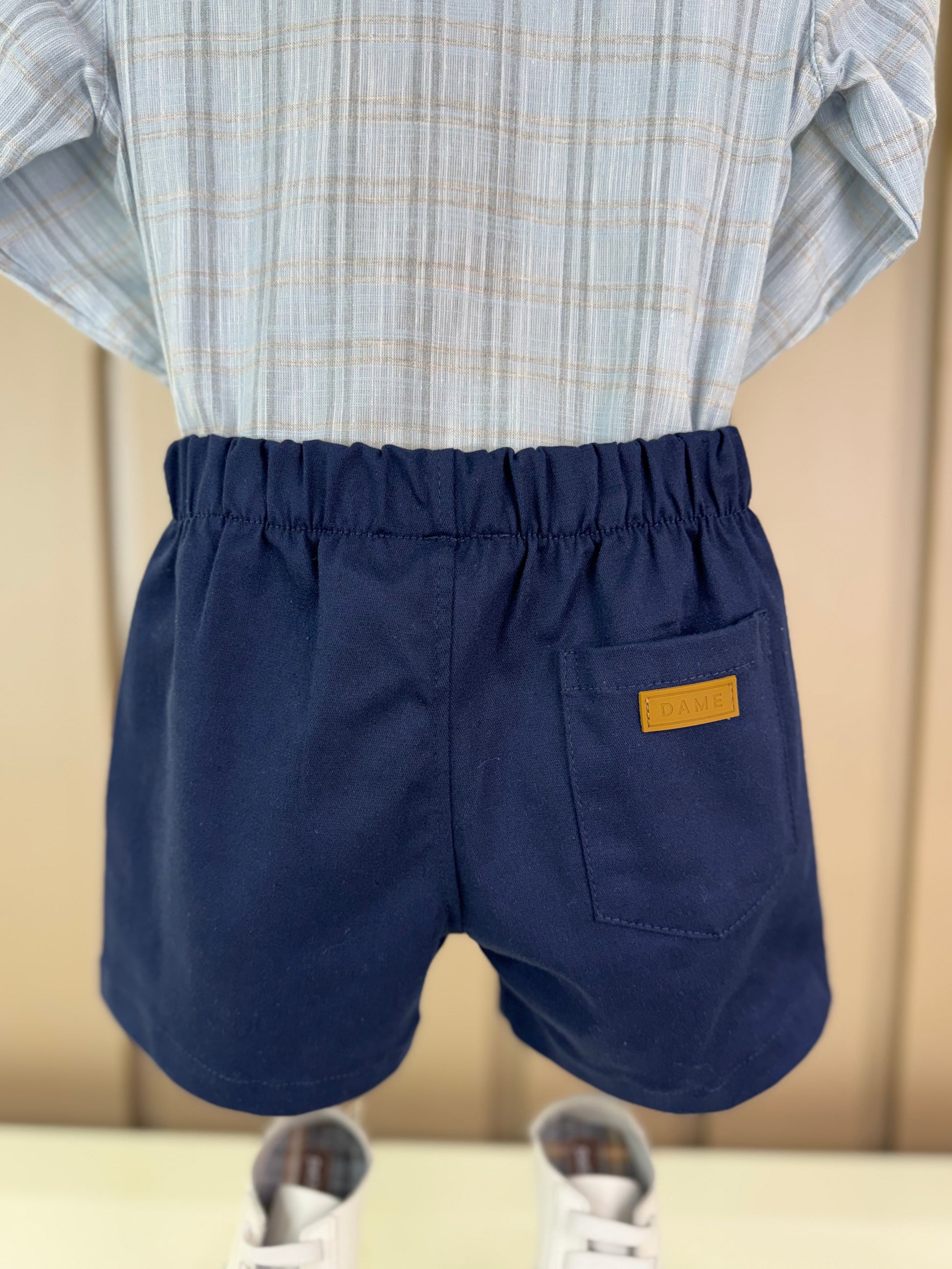 Conjunto Bebê Camisa-Body Algodão Xadrez ML Azul e Bermuda Social Marinho - Dame