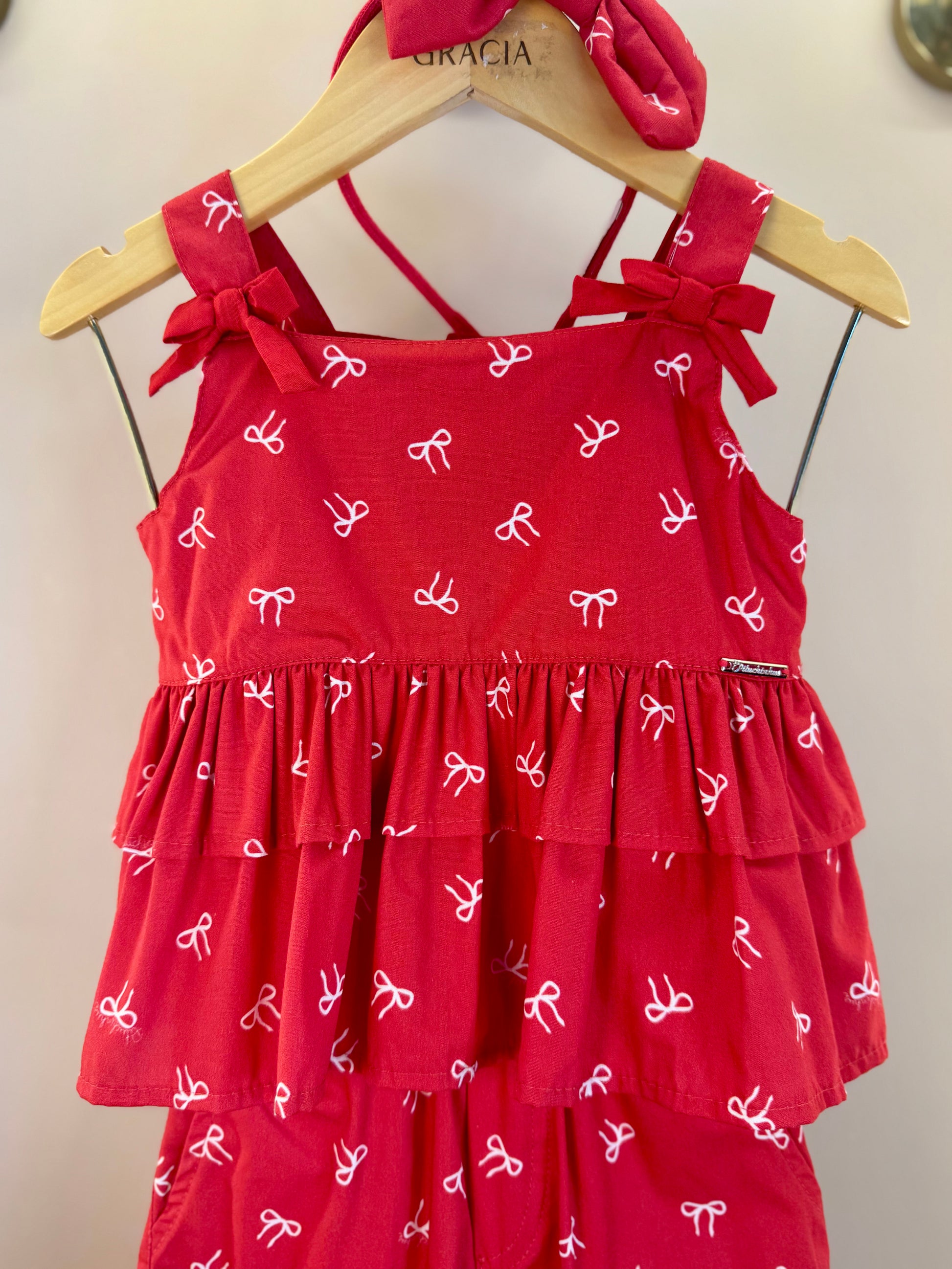 Conjunto Infantil Blusa Babados Lacinhos e Calça Pantacourt Lacinhos - Pituchinhus
