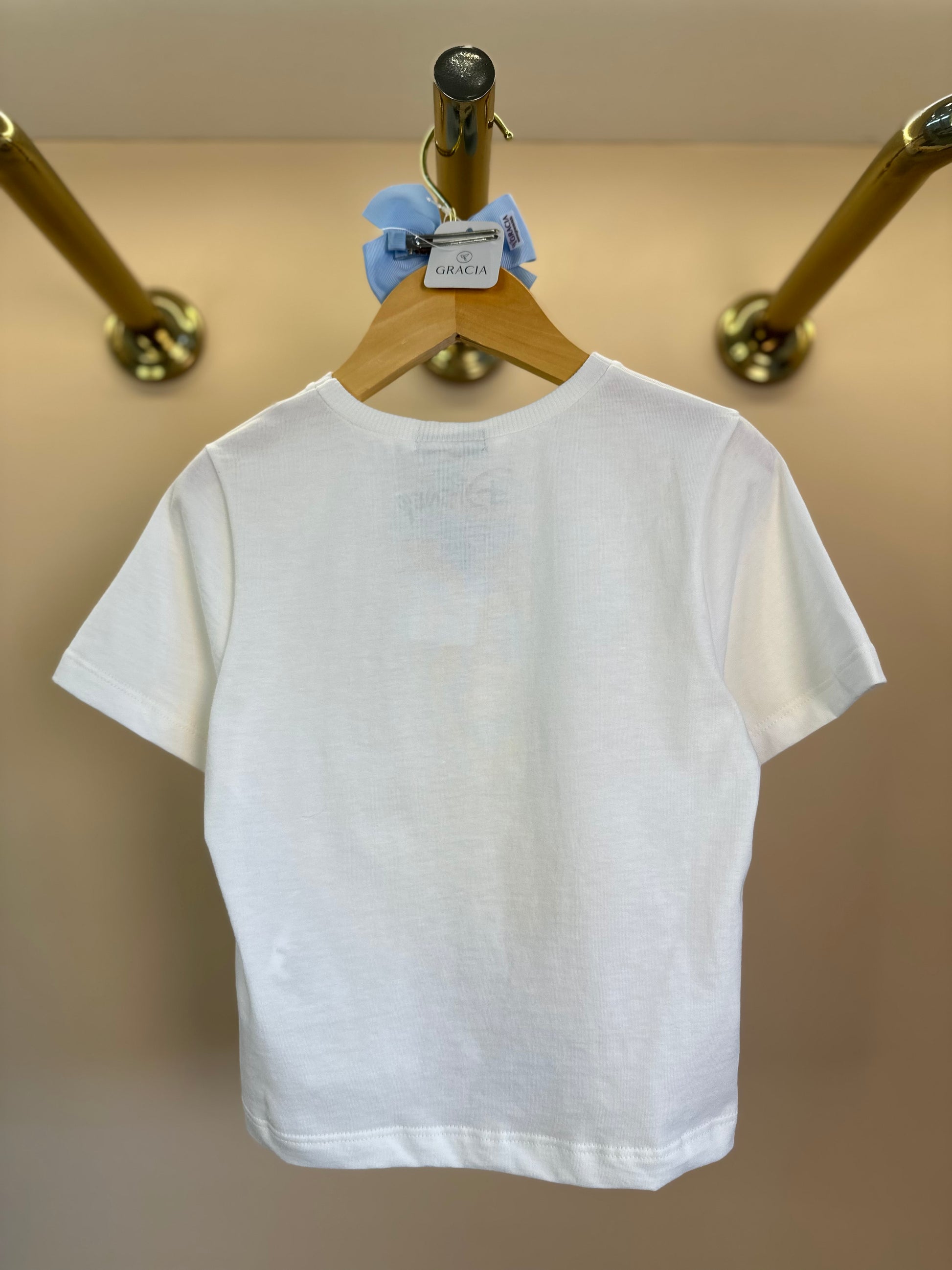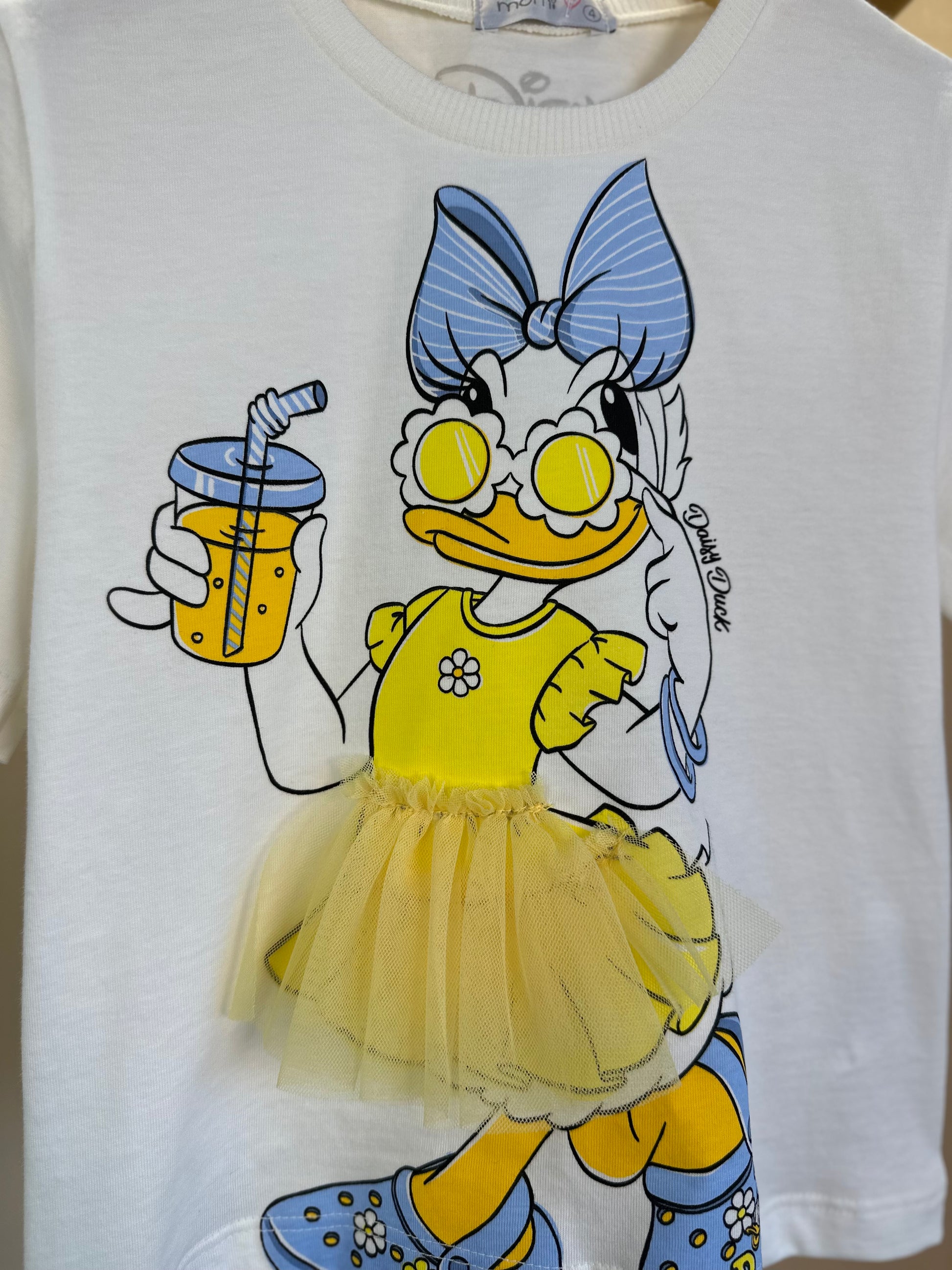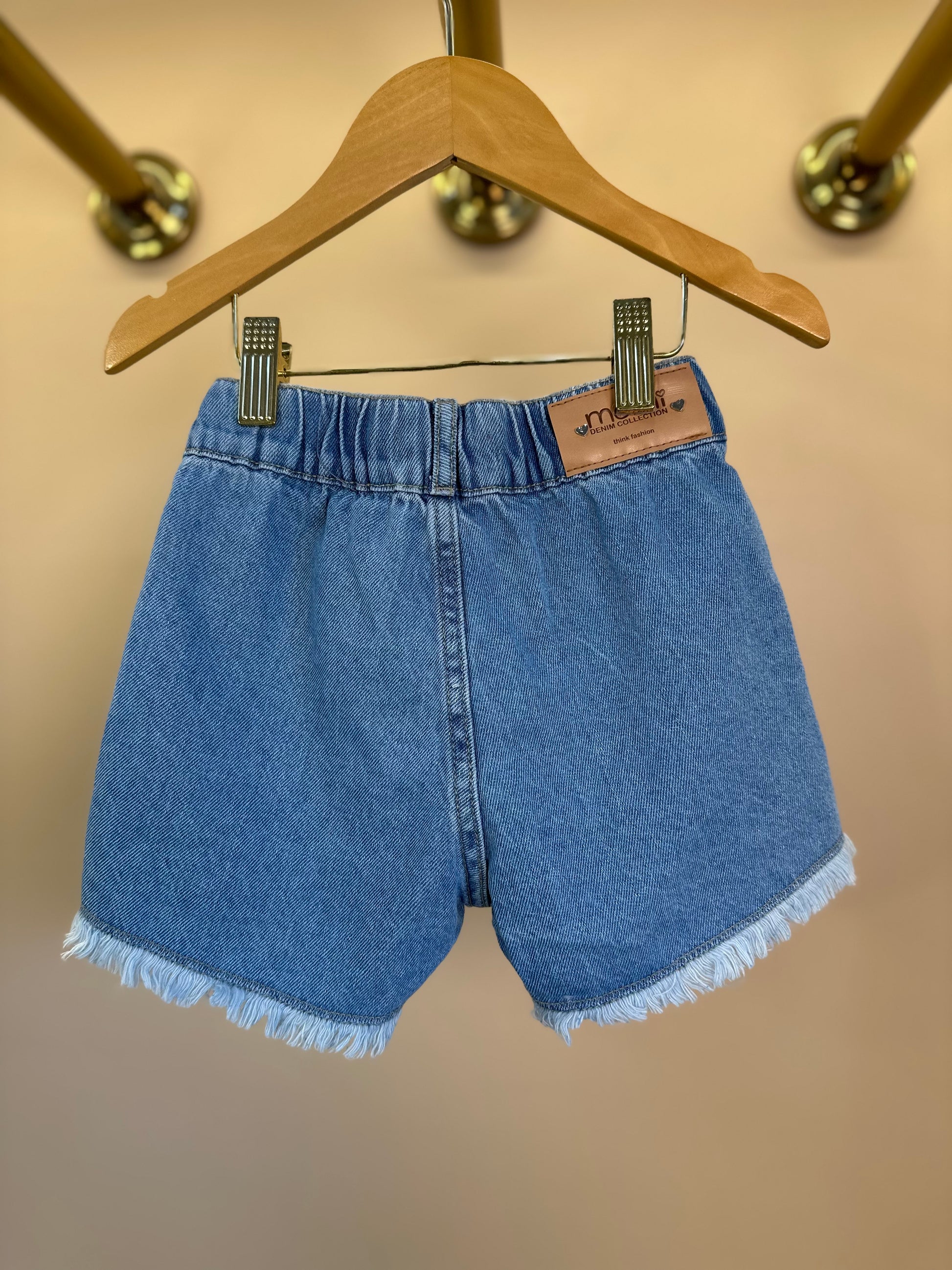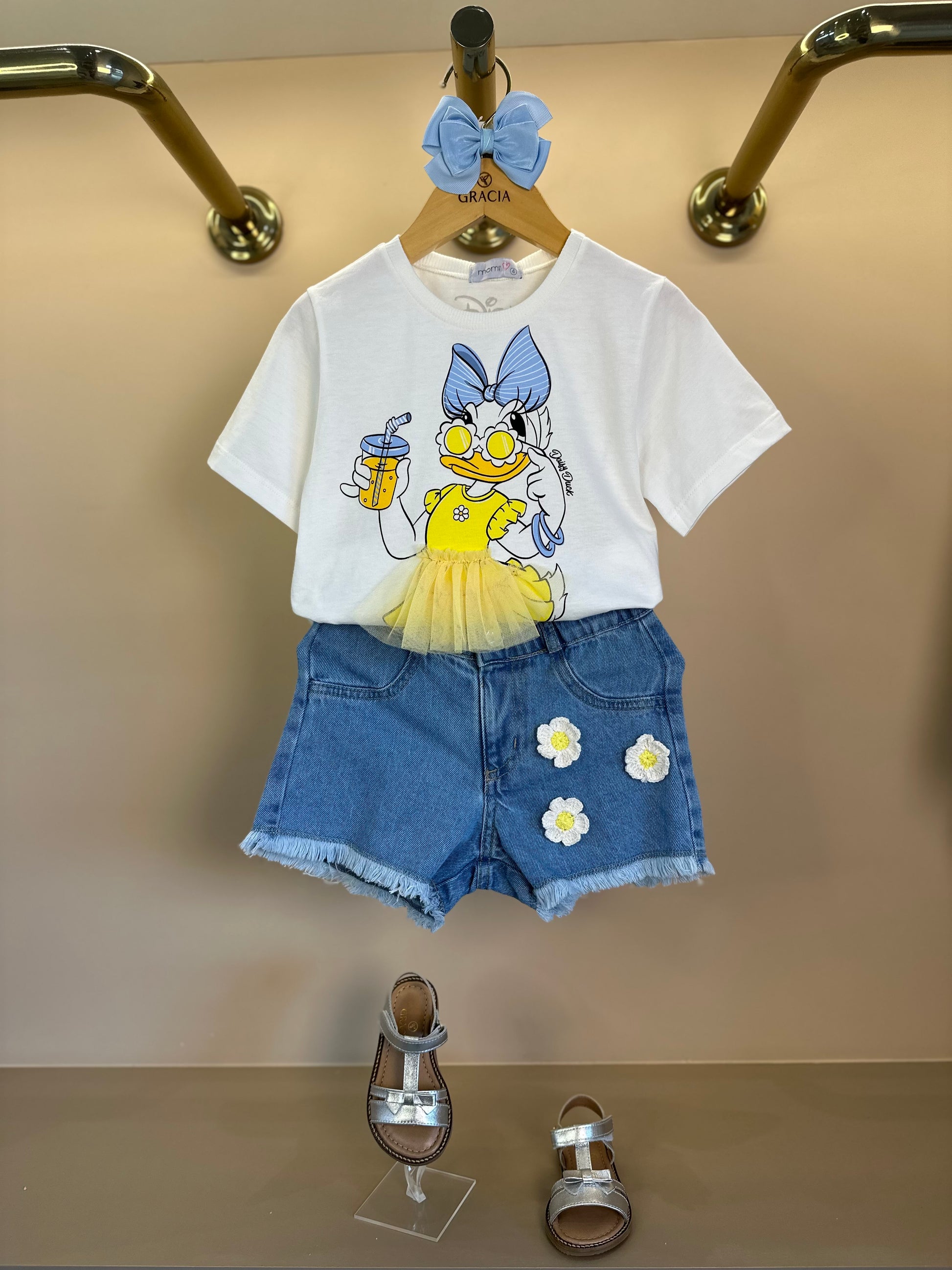 Conjunto Infantil Blusa Daisy Vestido Babadinho e Shorts Jeans Apliques Florzinhas - Momi
