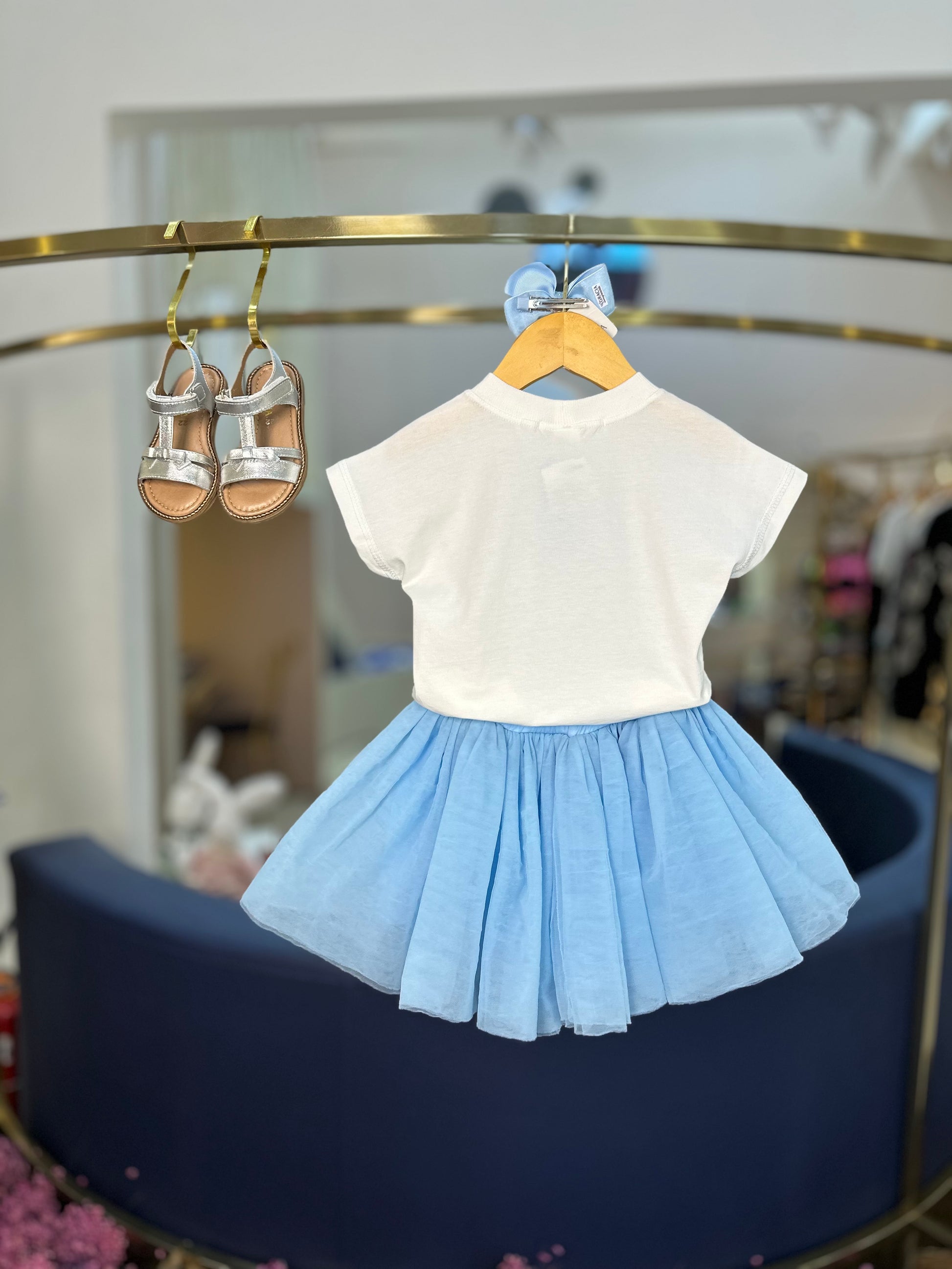 Conjunto Infantil Blusa de Algodão e Saia em Tulê com Camadas Azul - Beabá