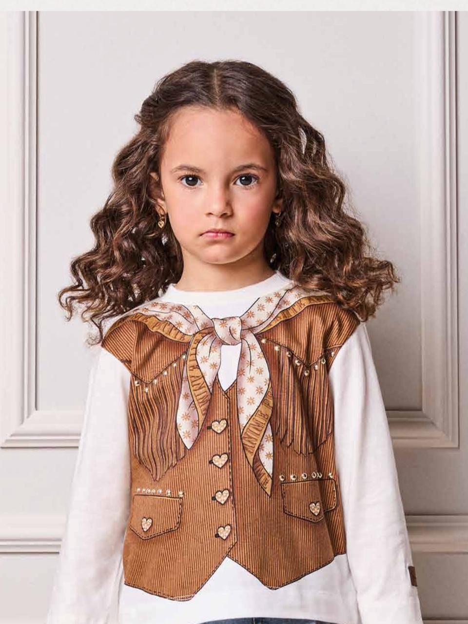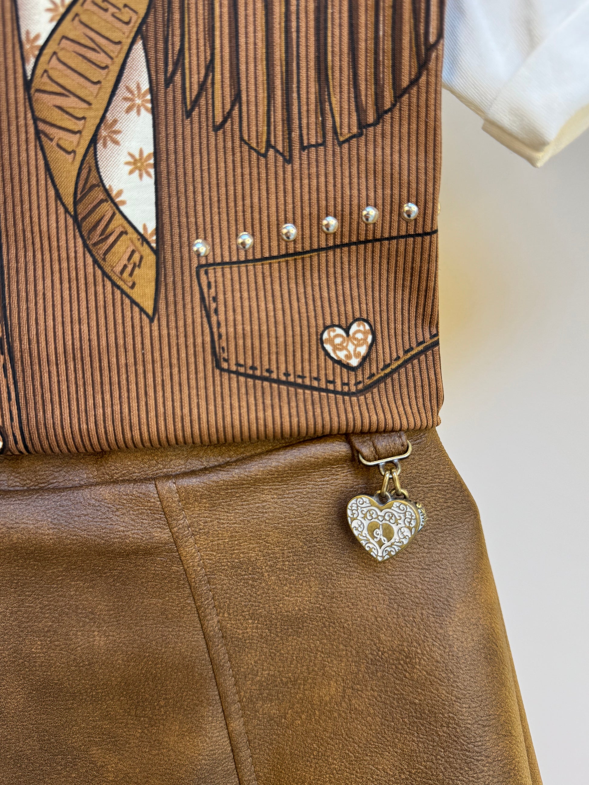 Conjunto Infantil Blusa Estampa Colete Lenço e Saia De Couro Tech Marrom - Animê