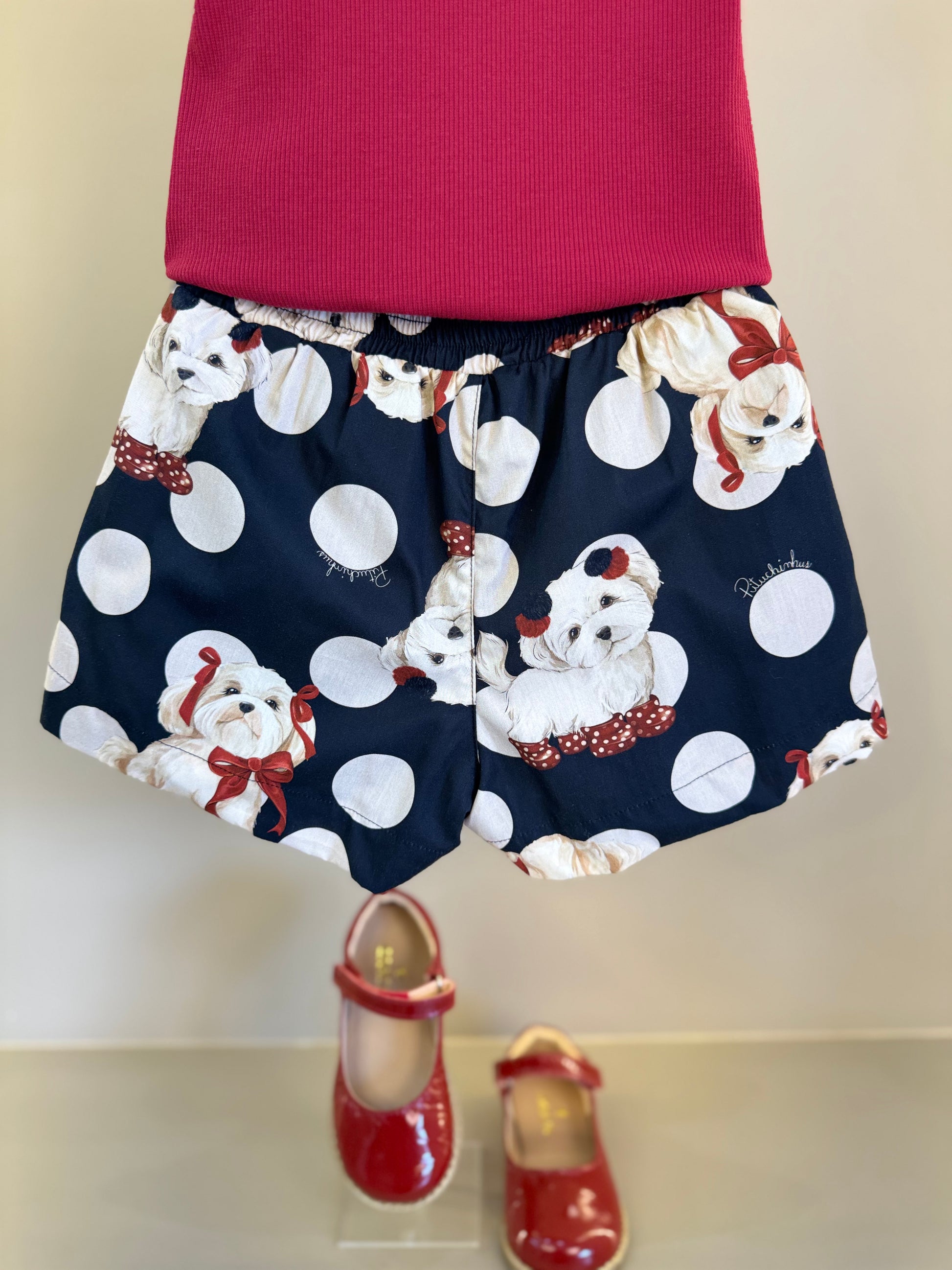 Conjunto infantil completo que combina estilo e conforto para as meninas. A blusa apresenta detalhes delicados com lacinhos e cristais que remetem a bala de cereja, enquanto o shorts em algodão puro traz estampa fofa de cachorrinhos com lacinhos. Perfeito para o dia a dia, oferece liberdade de movimento e maciez na pele. Ideal para criar looks modernos e divertidos que as crianças adoram usar.