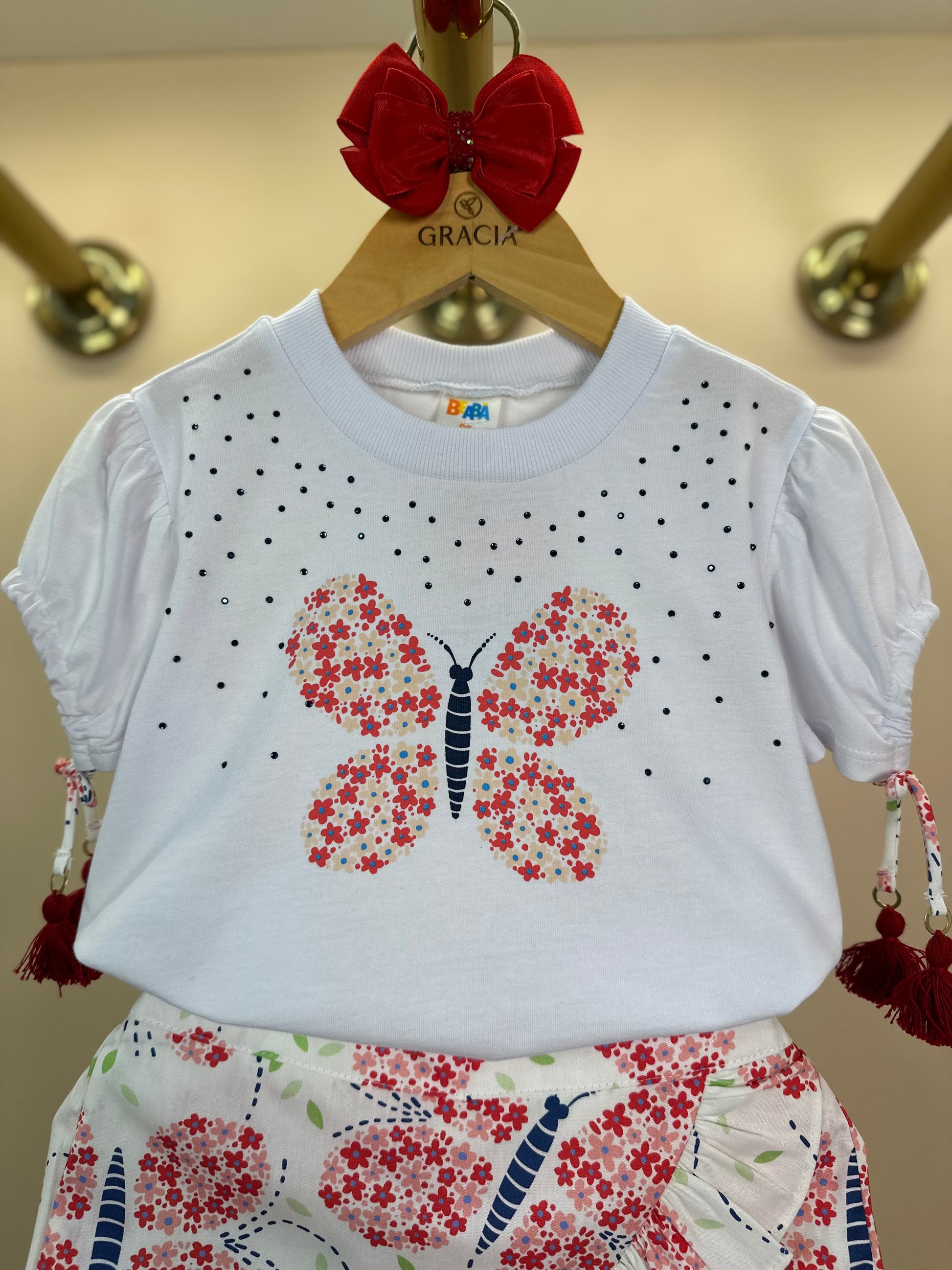 Conjunto Infantil Blusa Manga Bufante e Pompom e Shorts Babados - Beabá