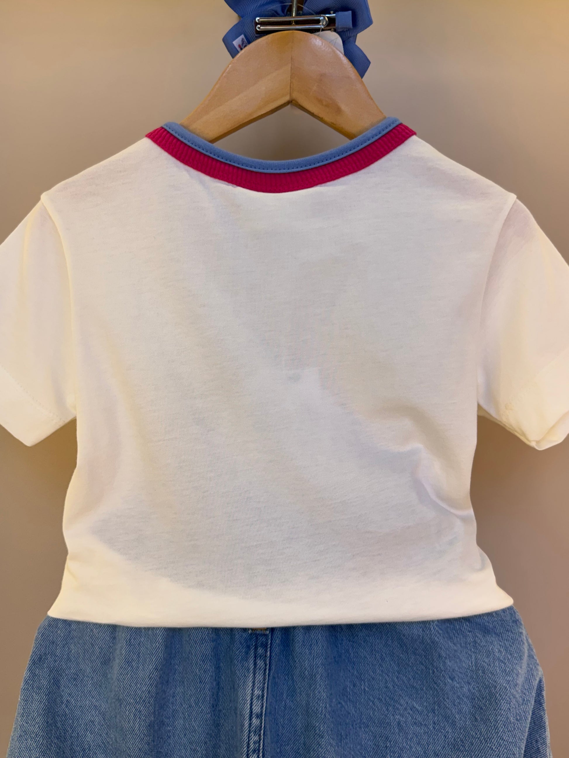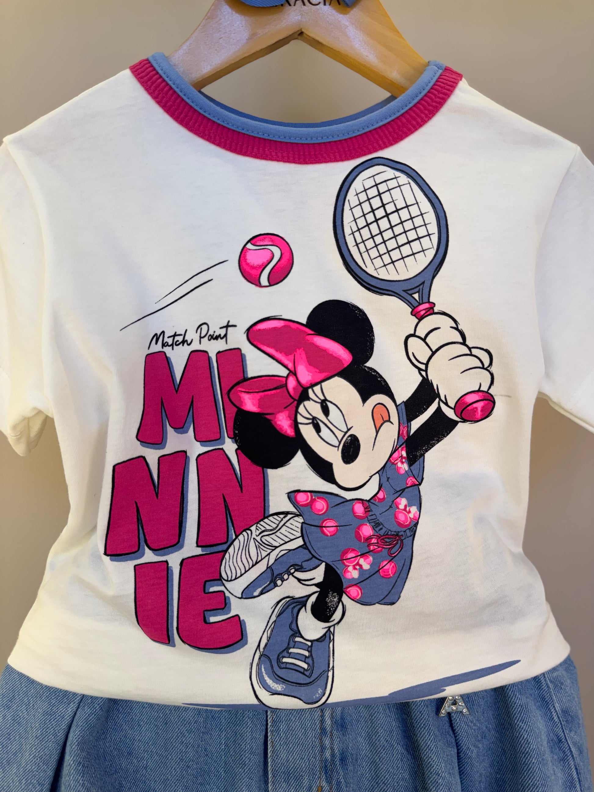 Conjunto Infantil Blusa Minnie Tennista Gola Rosa e Azul e Saia Jeans Elástico Style Minnie - Animê