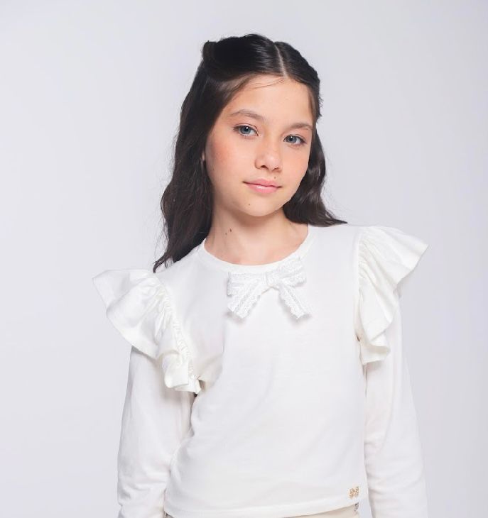 Conjunto completo e versátil para meninas que amam estilo! Composto por blusa de manga longa com laço delicado, saia-shorts em jeans de qualidade e pochete com detalhes de laço e pérolas. Perfeito para criar looks sofisticados no dia a dia, em passeios ou ocasiões especiais. A combinação de peças permite múltiplas possibilidades de uso, garantindo mais versatilidade ao guarda-roupa infantil. Ideal para meninas que gostam de se expressar através da moda com elegância e conforto.