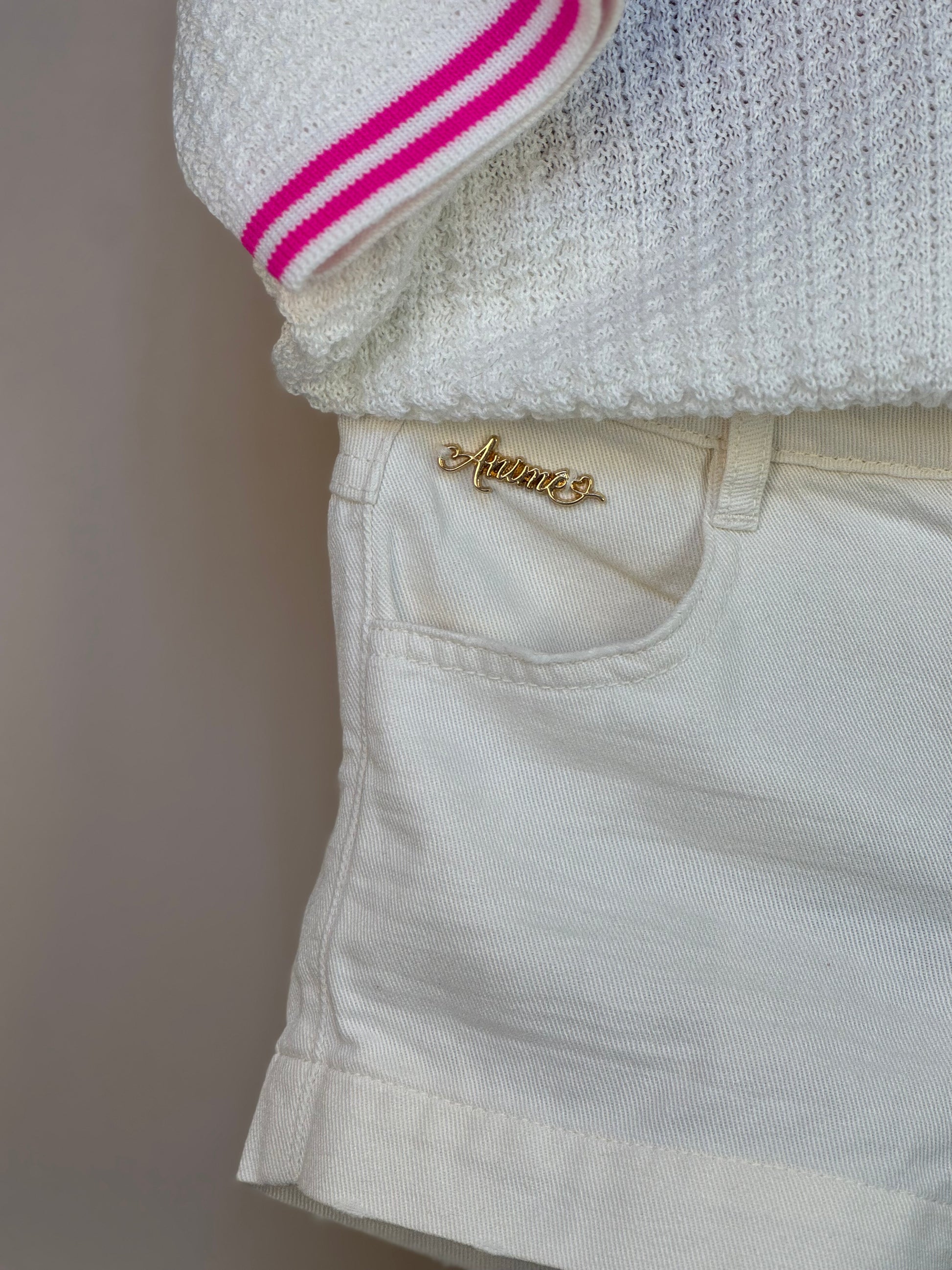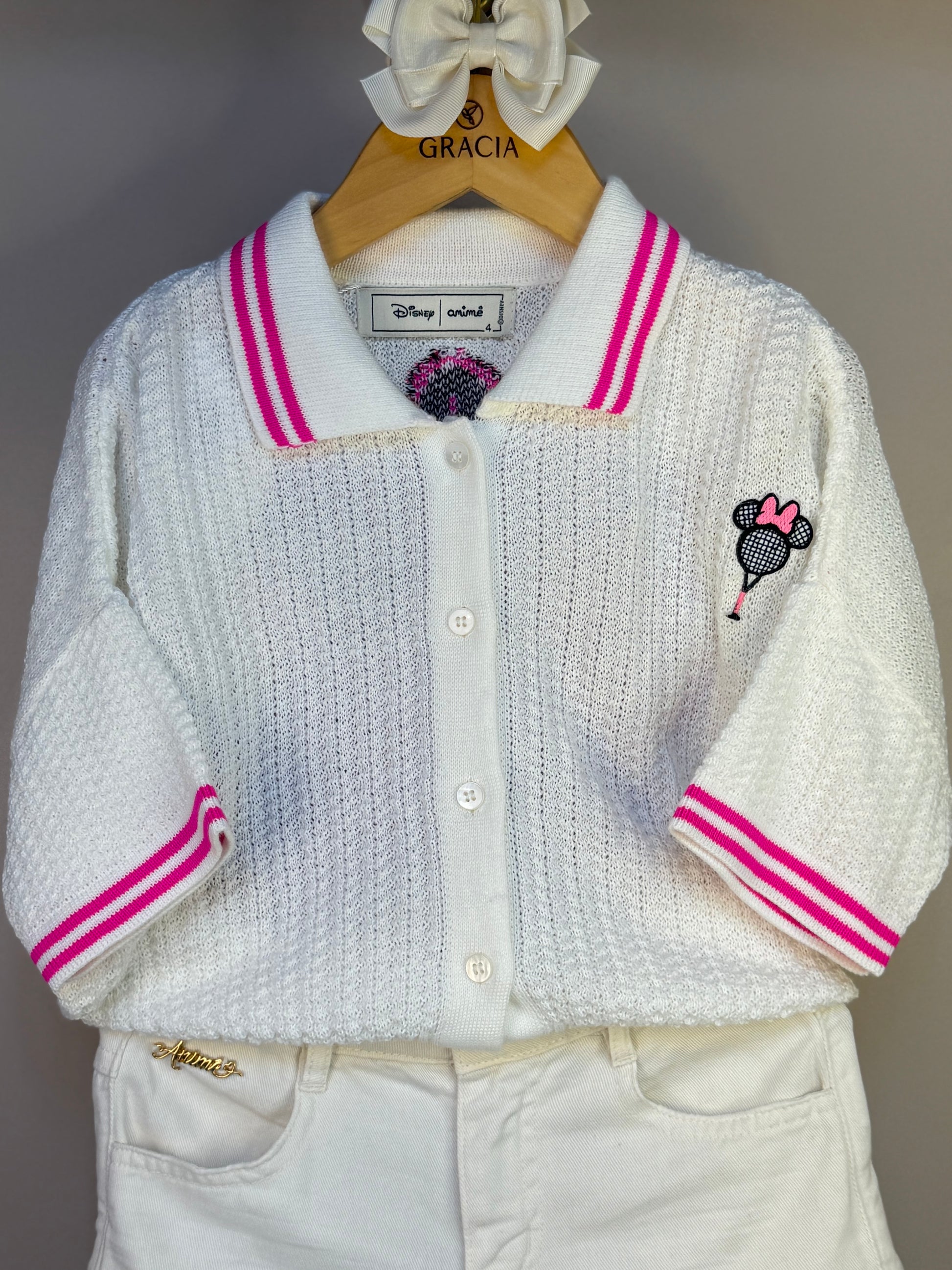 Conjunto Infantil Blusa Tricot Minnie Tennista e Shorts Sarja Off White - Animê