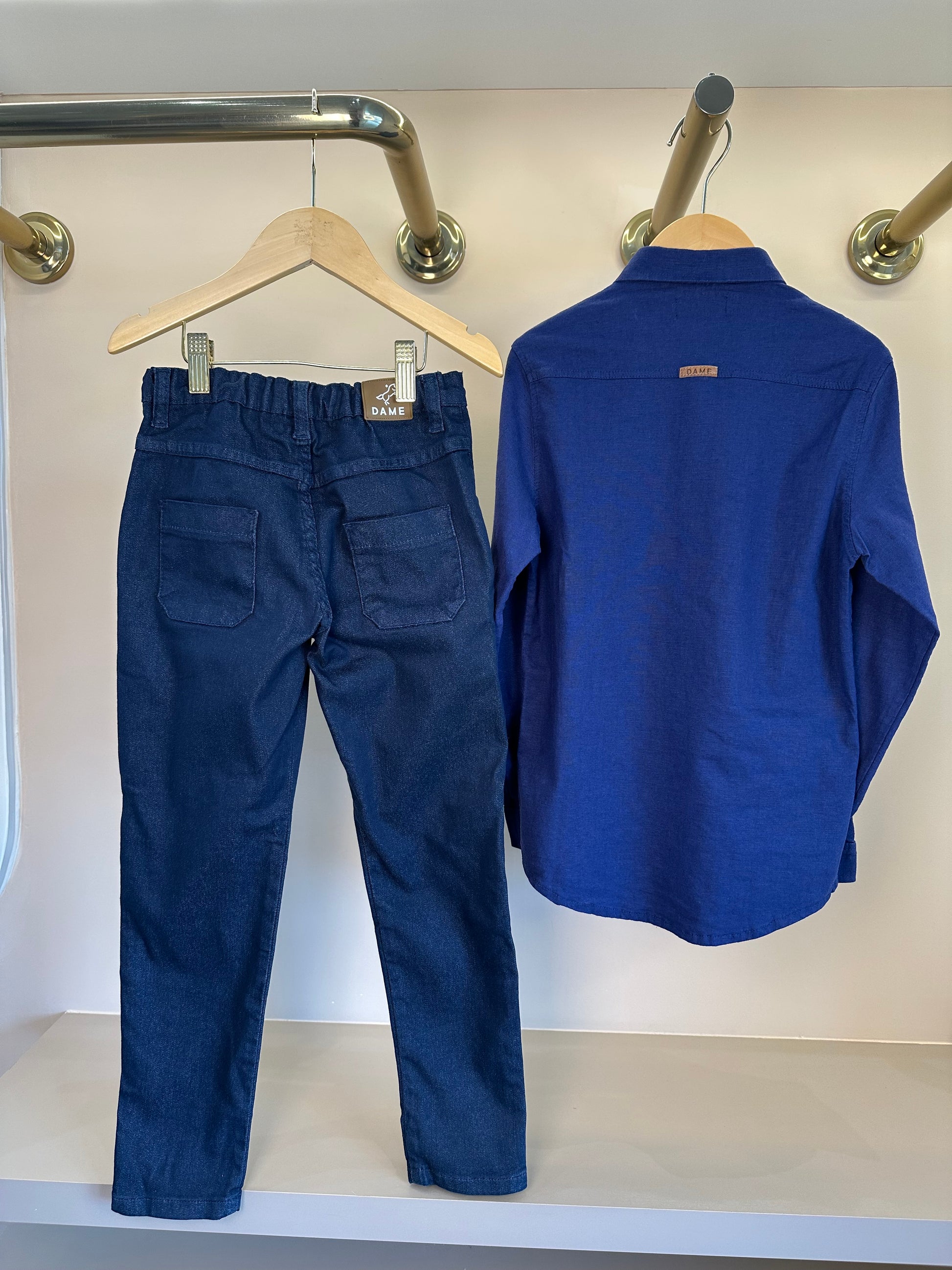 Conjunto Infantil Camisa de linho marinho e Calça social skinny de sarja - Dame