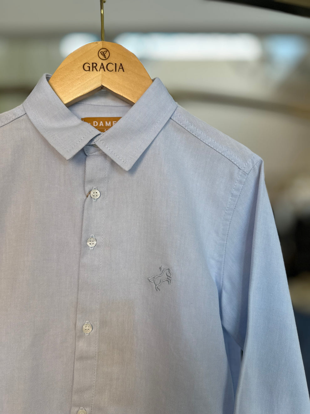 Este conjunto infantil combina uma camisa de tricoline azul, confortável e respirável, com uma calça social de sarja flex preta que oferece mobilidade e durabilidade para o dia a dia das crianças. Ideal para ocasiões formais ou eventos escolares, o tecido flex da calça garante liberdade de movimento sem perder o estilo clássico. Uma escolha prática e elegante para manter o visual alinhado com conforto.