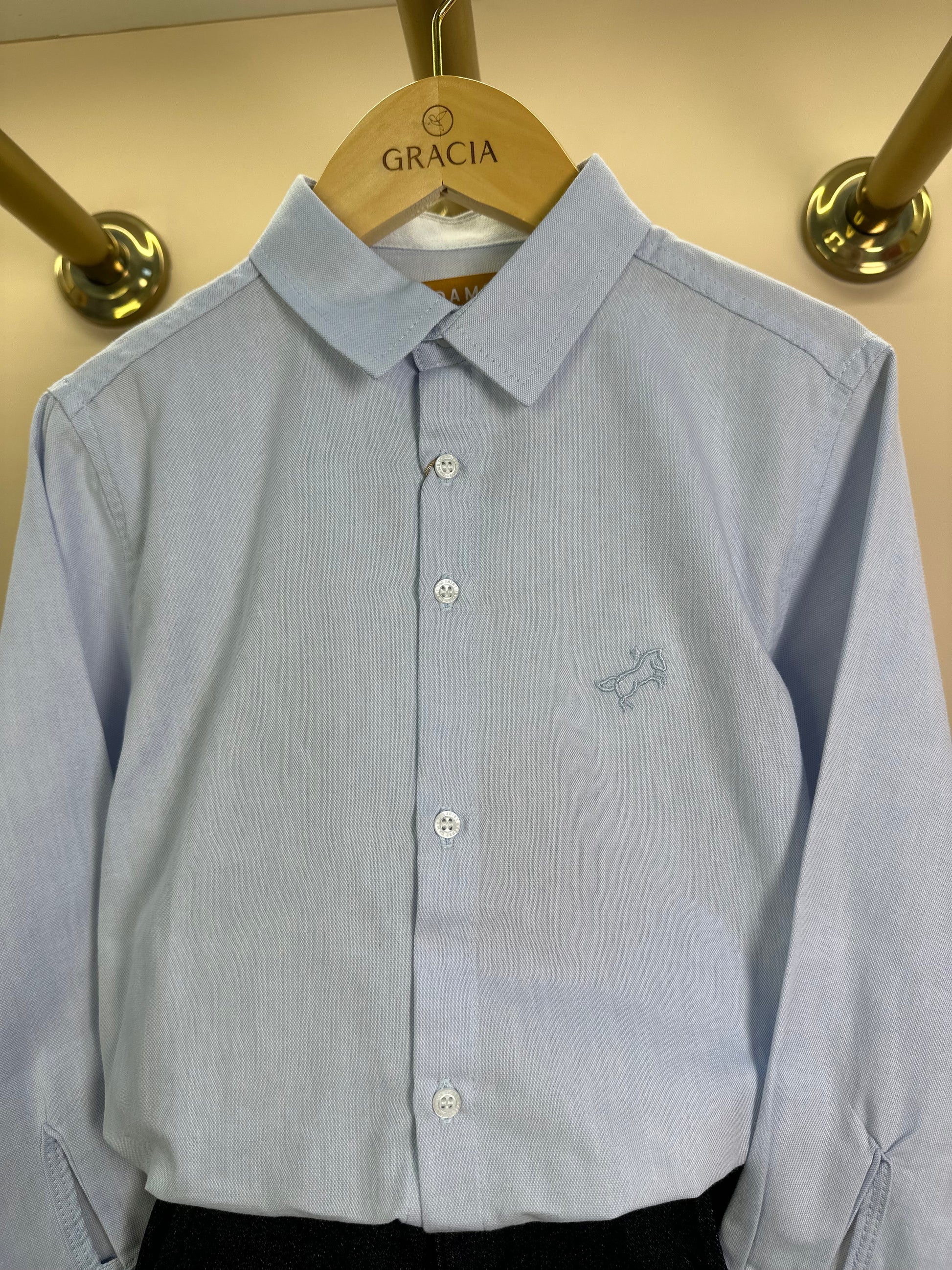 Conjunto Infantil Camisa Tricoline Azul e Calça Social Sarja Flex Preta - Dame