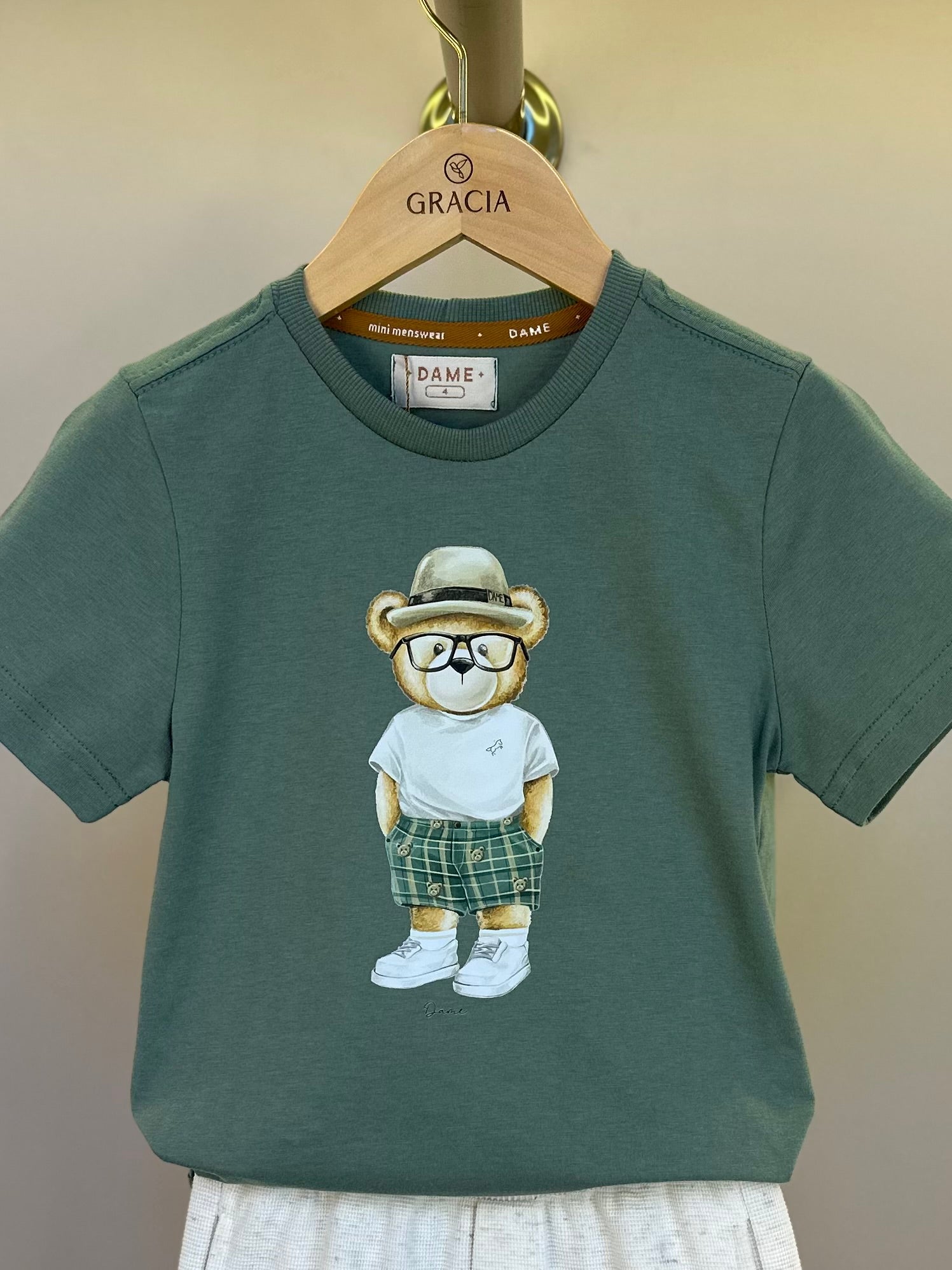 Conjunto Infantil Camiseta Algodão Teddy Chapéu Panama e Bermuda Moletom Algodão Linho - Dame