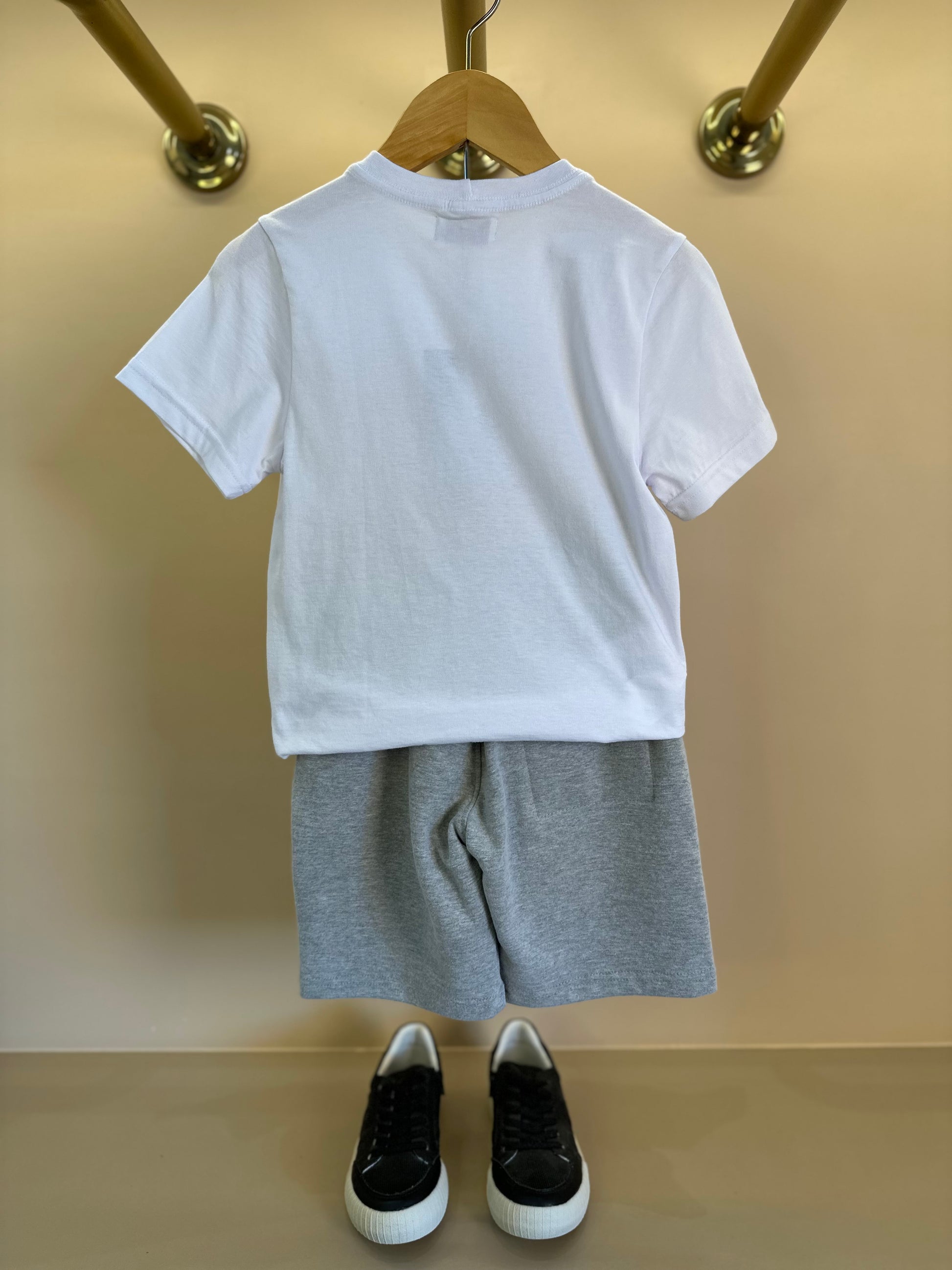 Conjunto Infantil Camiseta Algodão Teddy Kansas City Chiefs NFL e Bermuda Moletom Básica Cinza - Dame