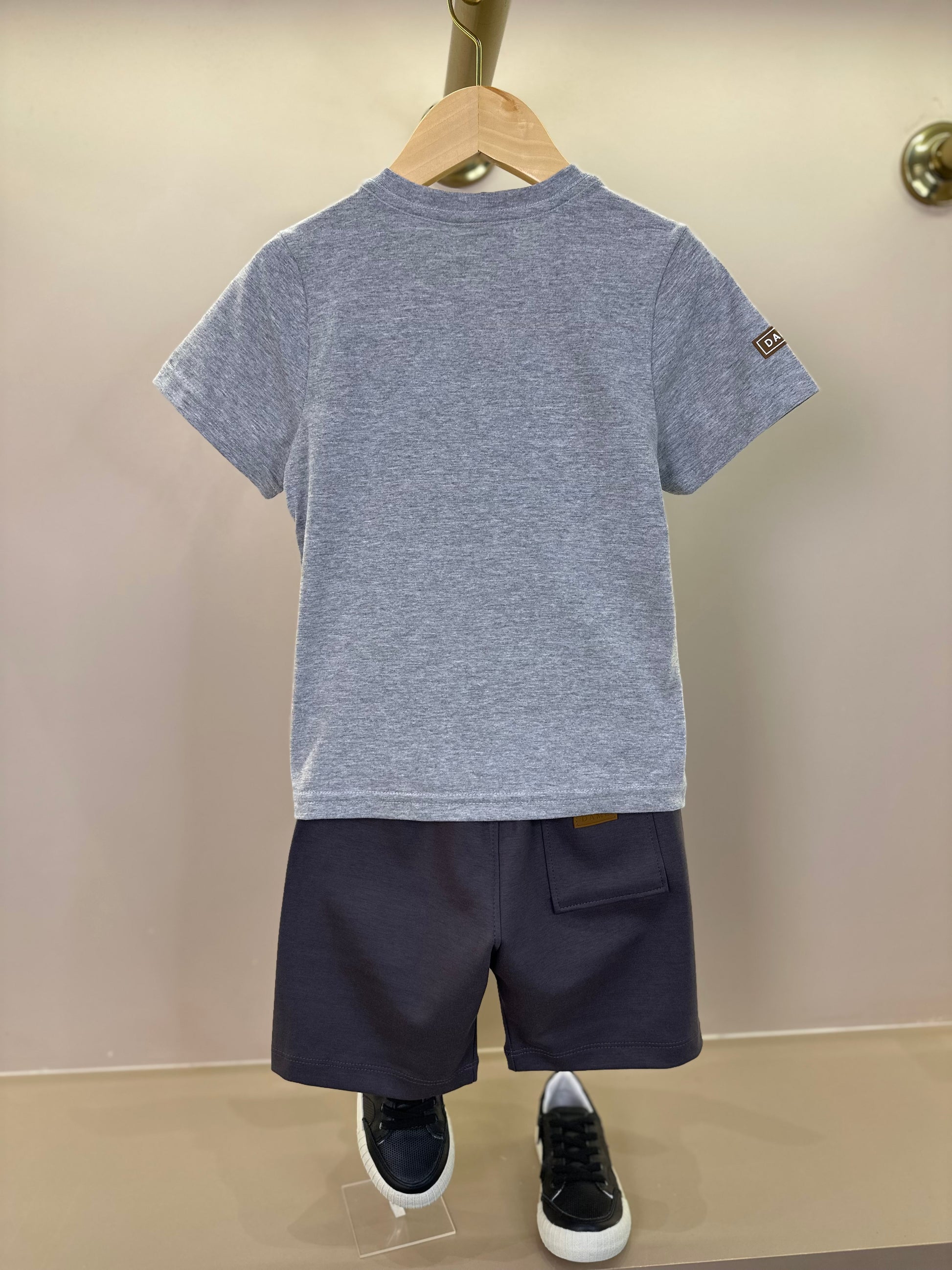 Este conjunto infantil une conforto e estilo com uma camiseta de algodão macio, decorada com estampa Teddy Philadelphia NFL cinza, e bermuda em suedine de algodão grafite com bolsos práticos. Ideal para o dia a dia das crianças, oferece leveza e facilidade de movimento, garantindo bem-estar sem abrir mão do visual descolado. Perfeito para ocasiões casuais e momentos de lazer.