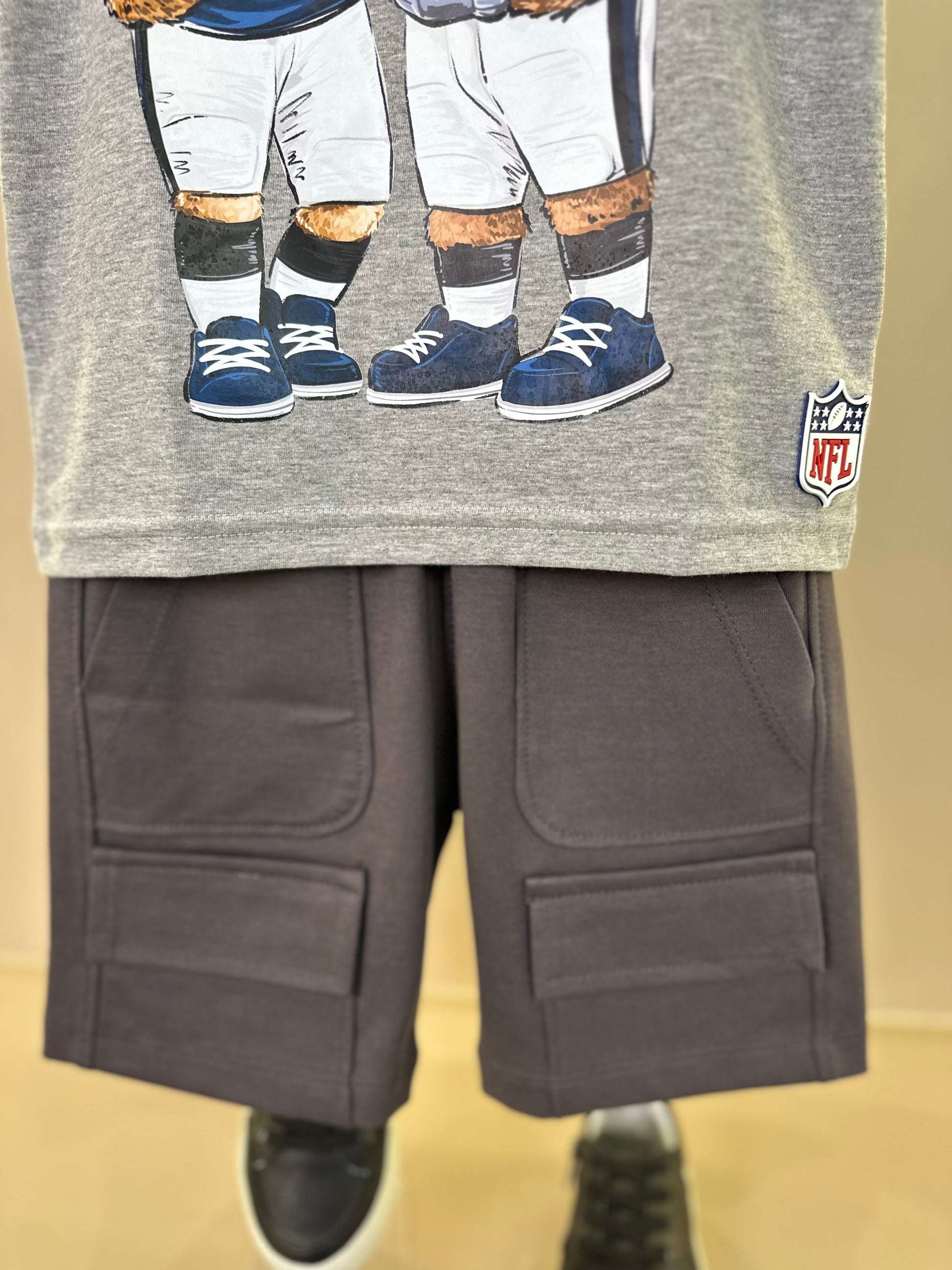 Conjunto Infantil Camiseta Algodão Teddy Philadelphia NFL Cinza e Bermuda Suedine Algodão Bolsos Grafite - Dame