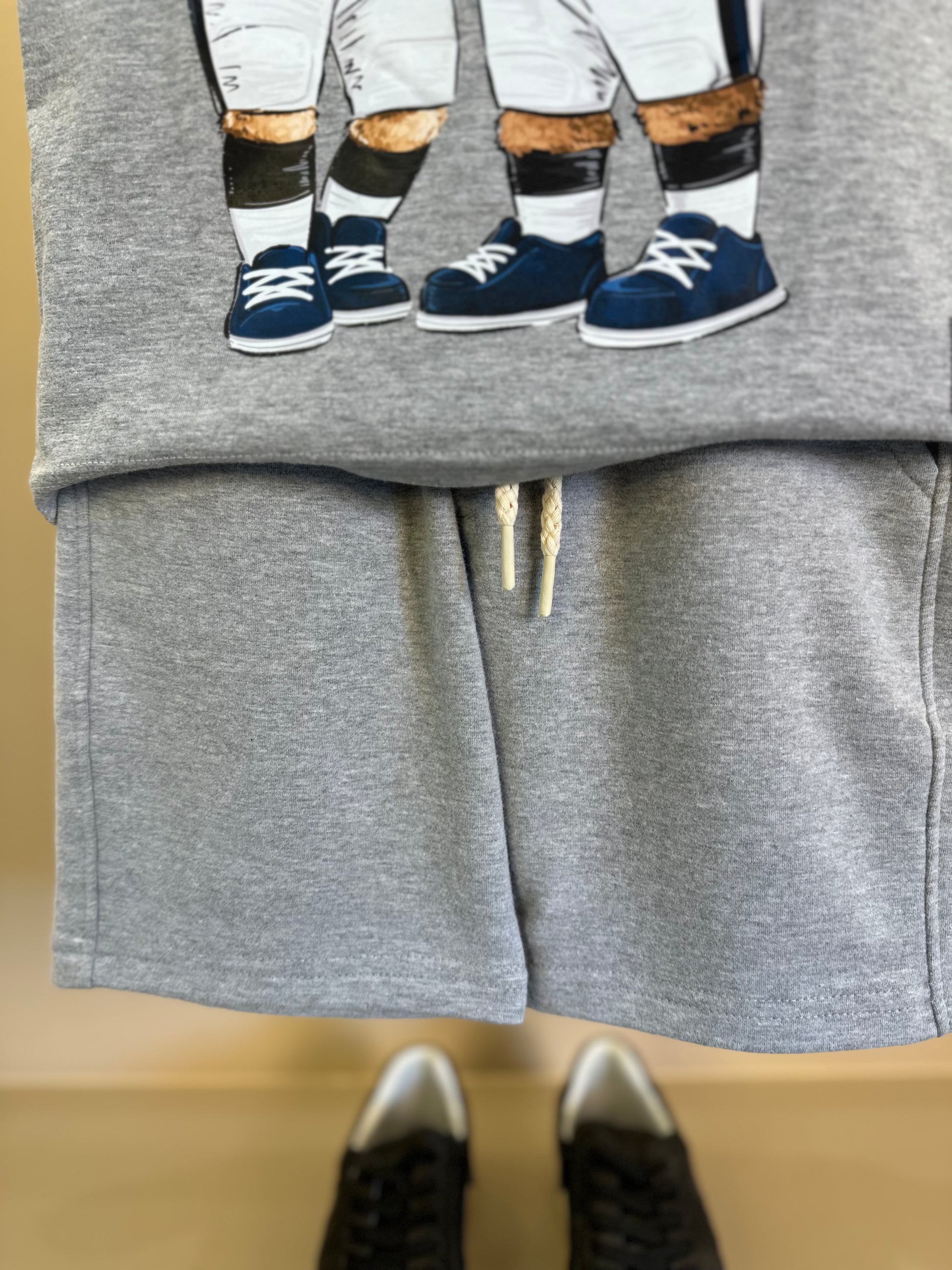 Conjunto Infantil Camiseta Algodão Teddy Philadelphia NFL e Bermuda Moletom Básica Cinza - Dame