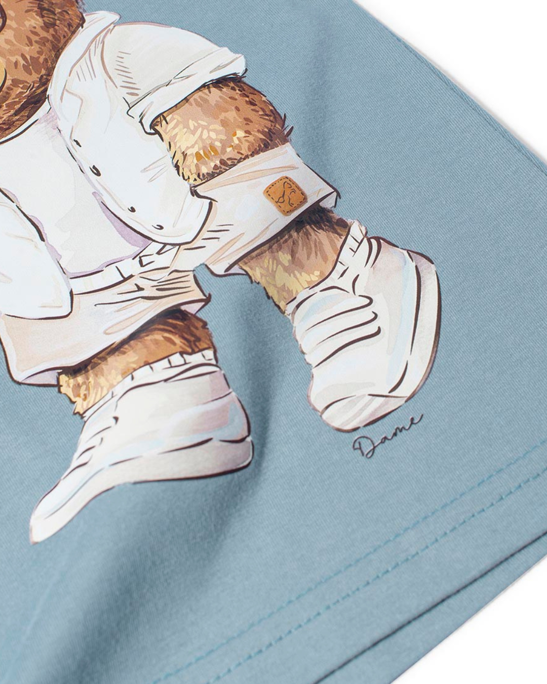 Conjunto Infantil Camiseta Teddy Sumer Delavê e Bermuda Moletom Elastano Elástico Listrado - Dame