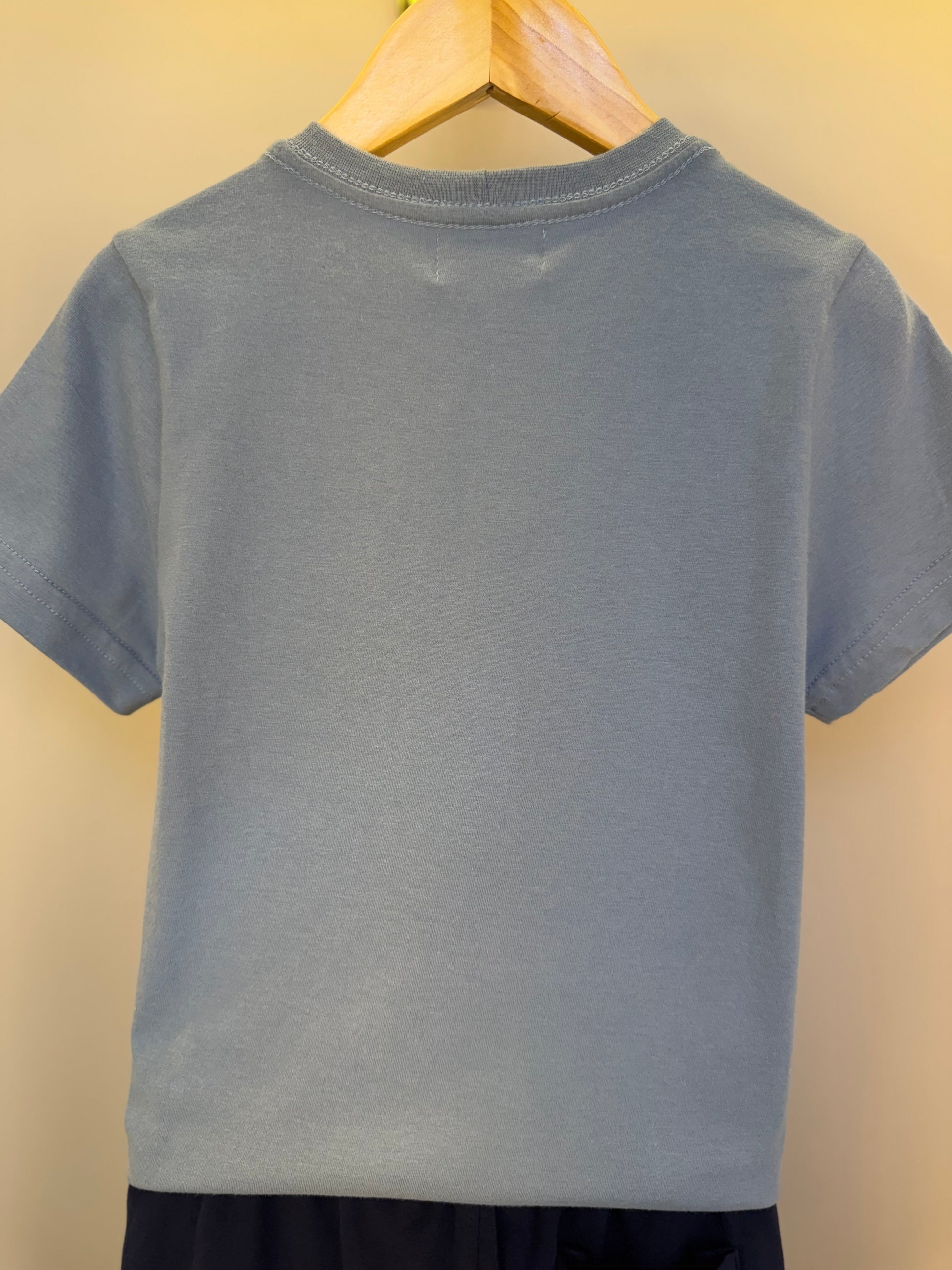 Conjunto infantil versátil que combina conforto e estilo para o dia a dia. A camiseta em algodão delavê apresenta estampa teddy summer, enquanto a bermuda em moletom com elastano oferece flexibilidade e durabilidade. O elástico listrado na cintura garante ajuste seguro e confortável. Ideal para crianças que buscam praticidade sem abrir mão da qualidade. Perfeito para passeios, brincadeiras e momentos de lazer.