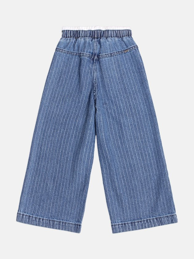A Calça Wide Infantil Listrada com Laço é perfeita para quem ama unir conforto e estilo! Produzida em jeans leve com listras verticais, ela traz um caimento solto e moderno, que garante liberdade total nos movimentos. O cós elástico com amarração em laço frontal oferece praticidade e um charme extra à peça. Ideal para criar looks casuais e cheios de atitude, combina facilmente com blusas básicas, tricôs e casacos. Um modelo versátil e estiloso que acompanha as pequenas em qualquer ocasião, do dia a dia aos passeios em família! Ref.: H6729