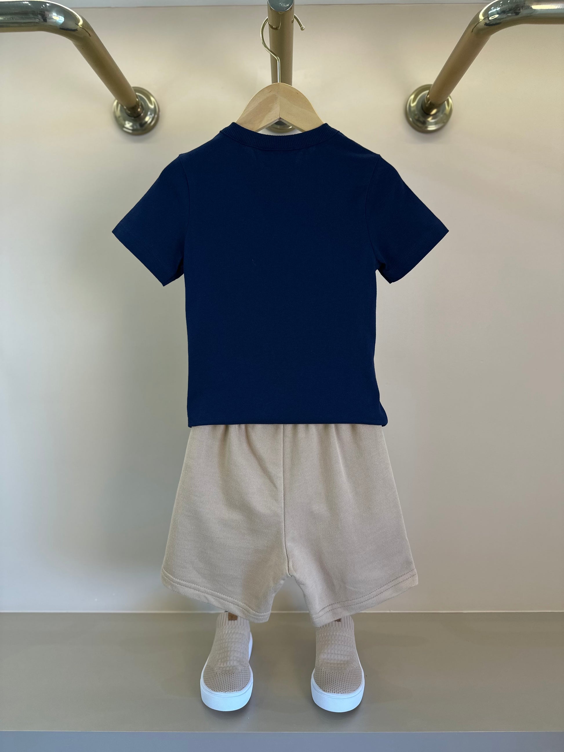 Conjunto Infantil T-Shirt Boat e Bermuda Bege - Youccie
