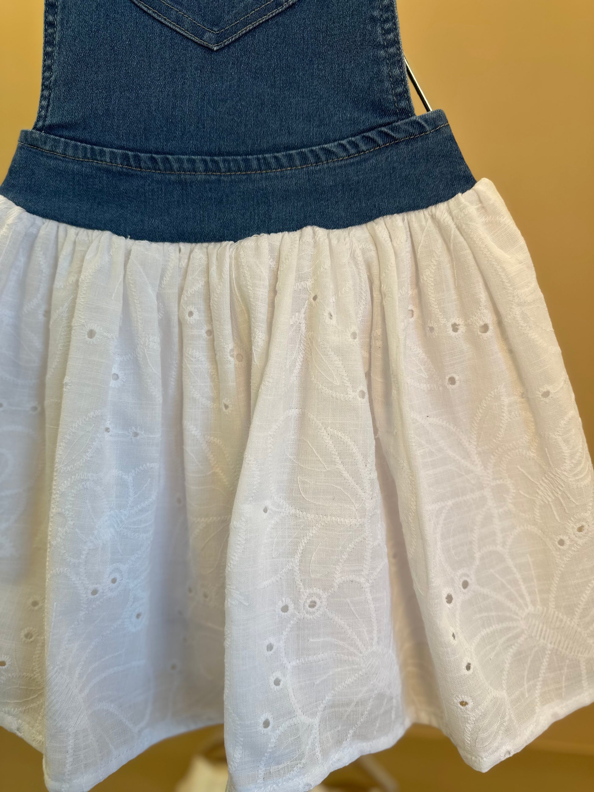 A jardineira jeans com saia em tecido laise branco da coleção Gabriela Aquarela combina a resistência do jeans com a leveza e delicadeza da saia em laise, proporcionando conforto e estilo para o dia a dia das crianças. Seu design versátil permite múltiplas combinações, garantindo praticidade para quem veste e facilidade na hora de cuidar. Ideal para ocasiões casuais e momentos de lazer, oferece um toque de elegância com a suavidade do laise, mantendo a durabilidade do jeans nas partes principais.