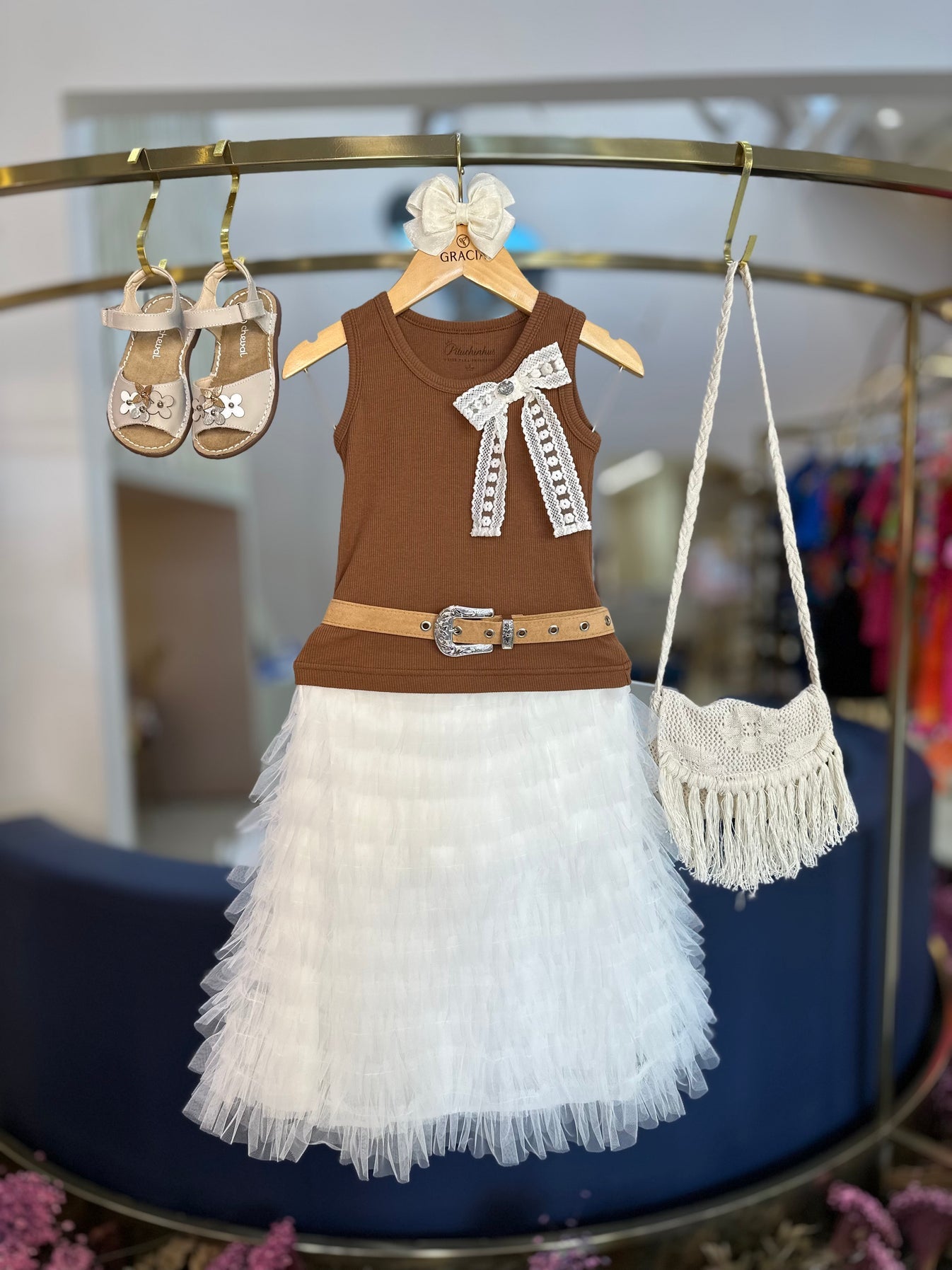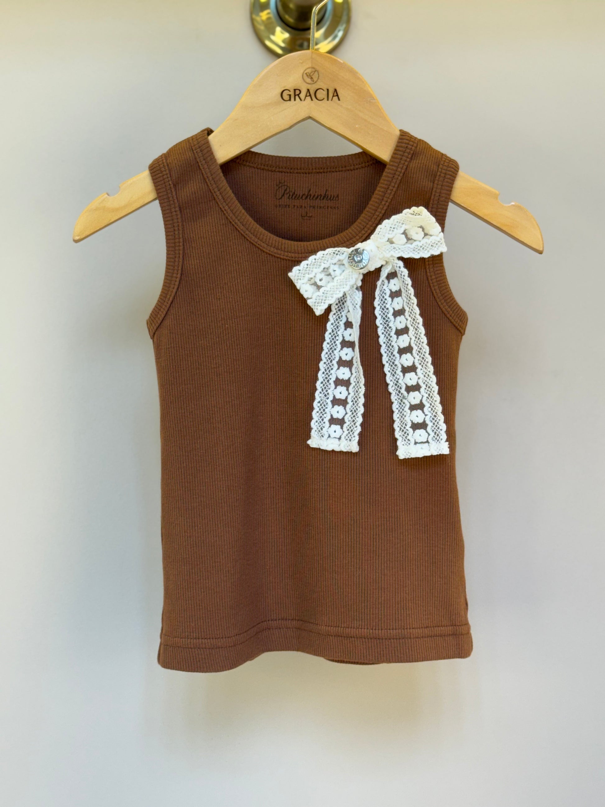 Regata Infantil Laço de Renda Marrom - Pituchinhus