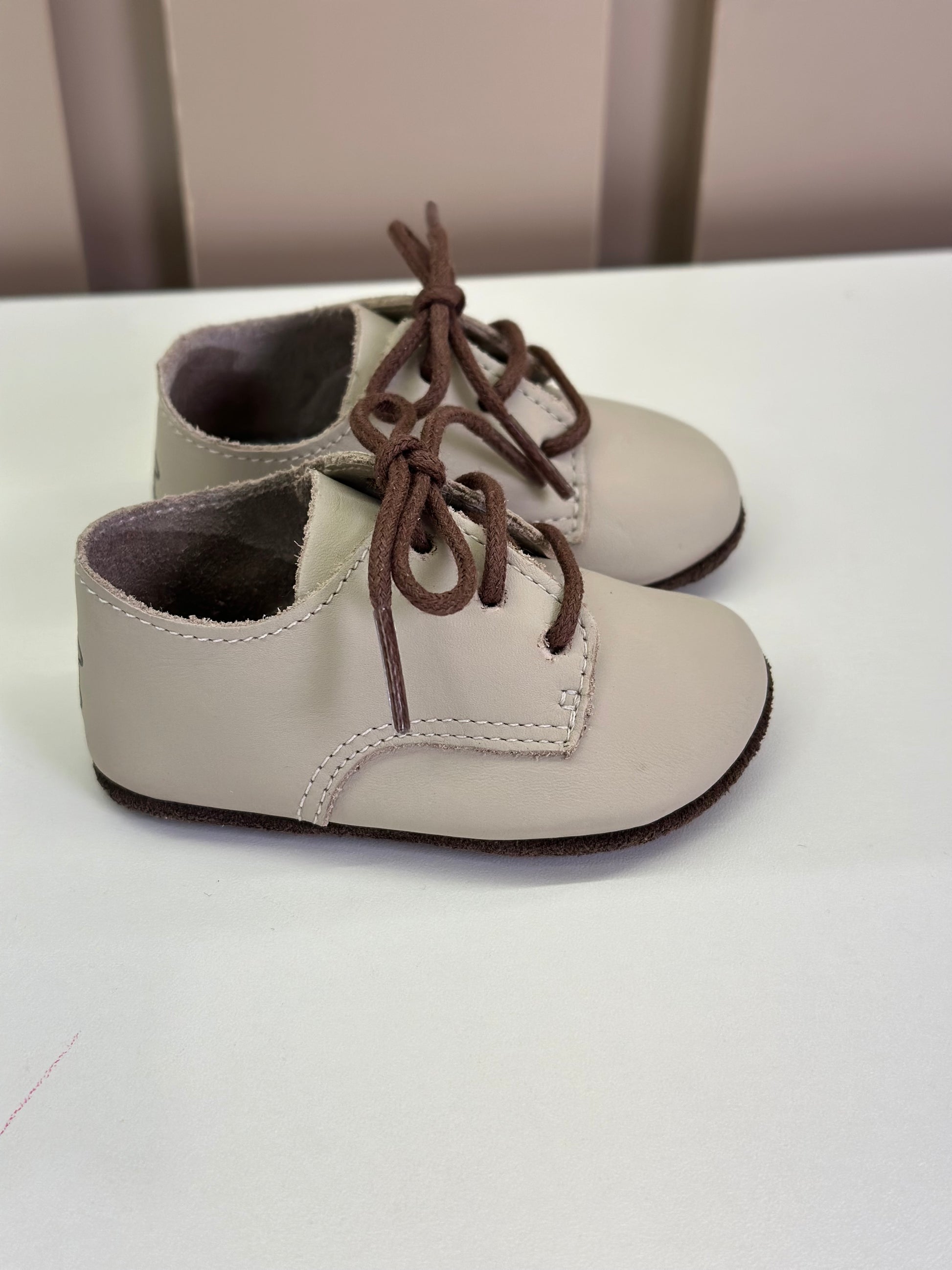 Sapato Bebê Balão Couro Areia - Petit Cheval