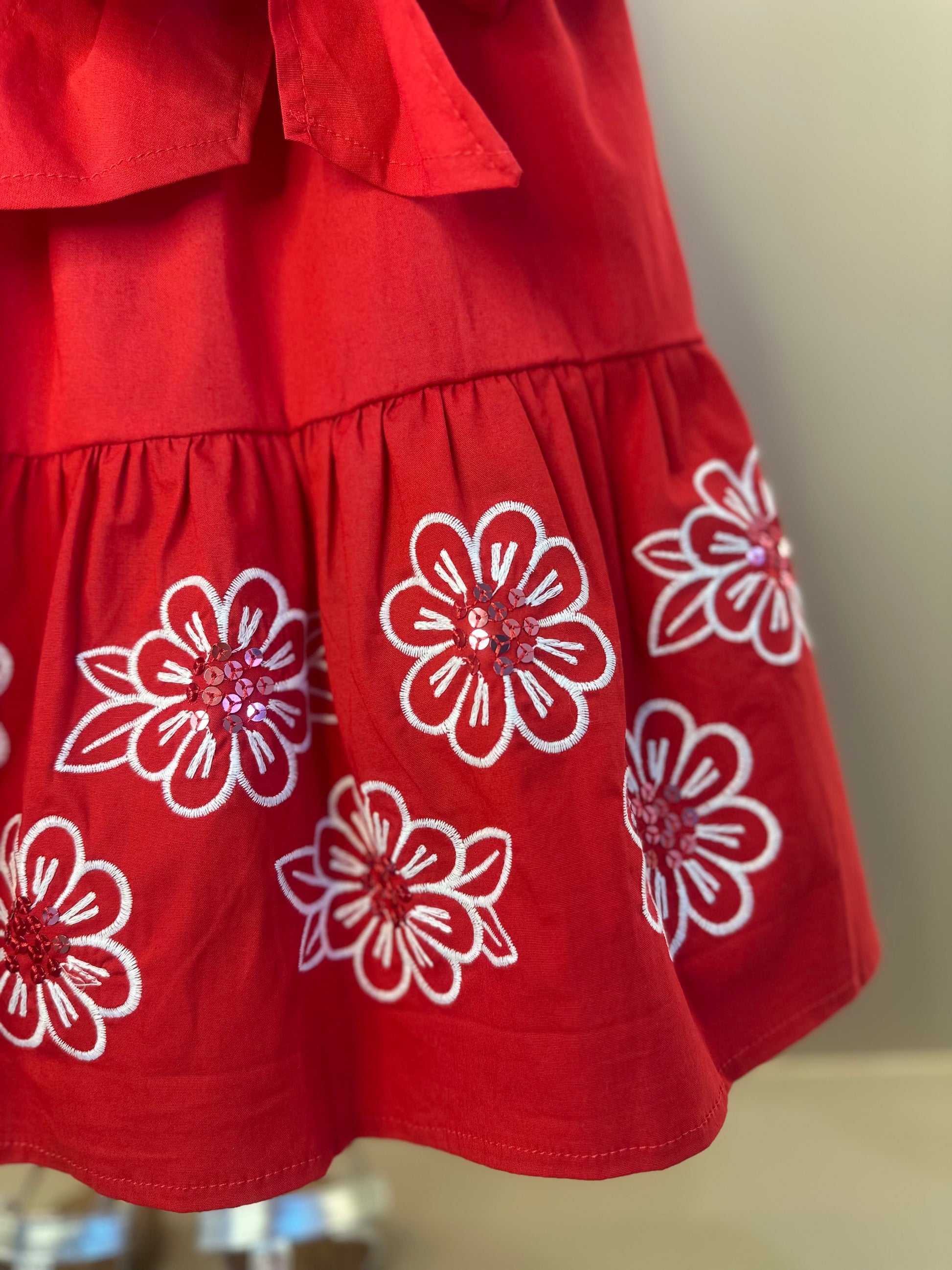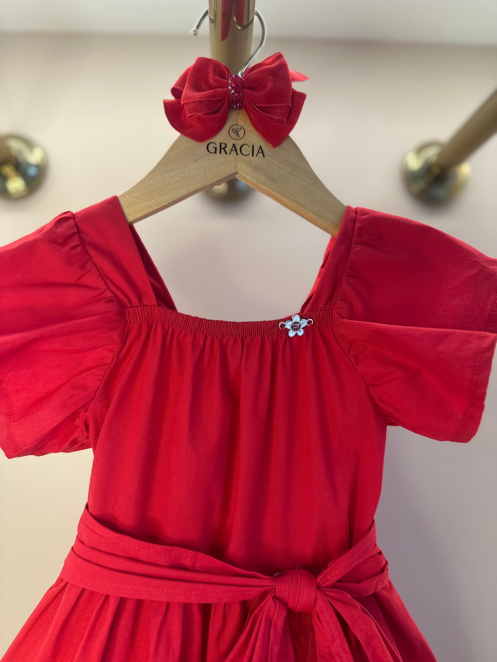 Vestido Infantil Amarração Laço Bordado Paetê - Momi