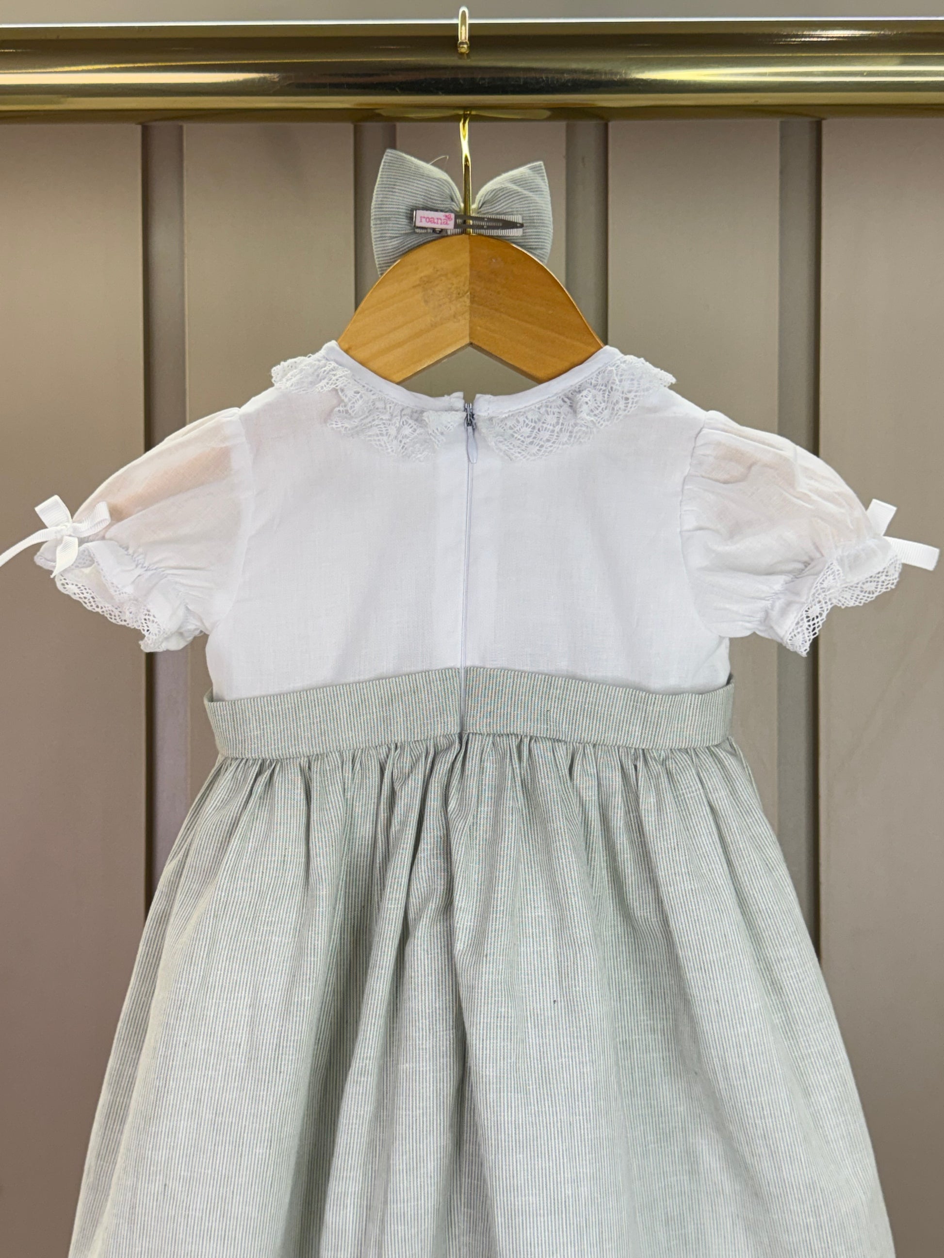 Vestido Infantil Bordado Flores E Mangas Bordadas Clásico Verde - Roana