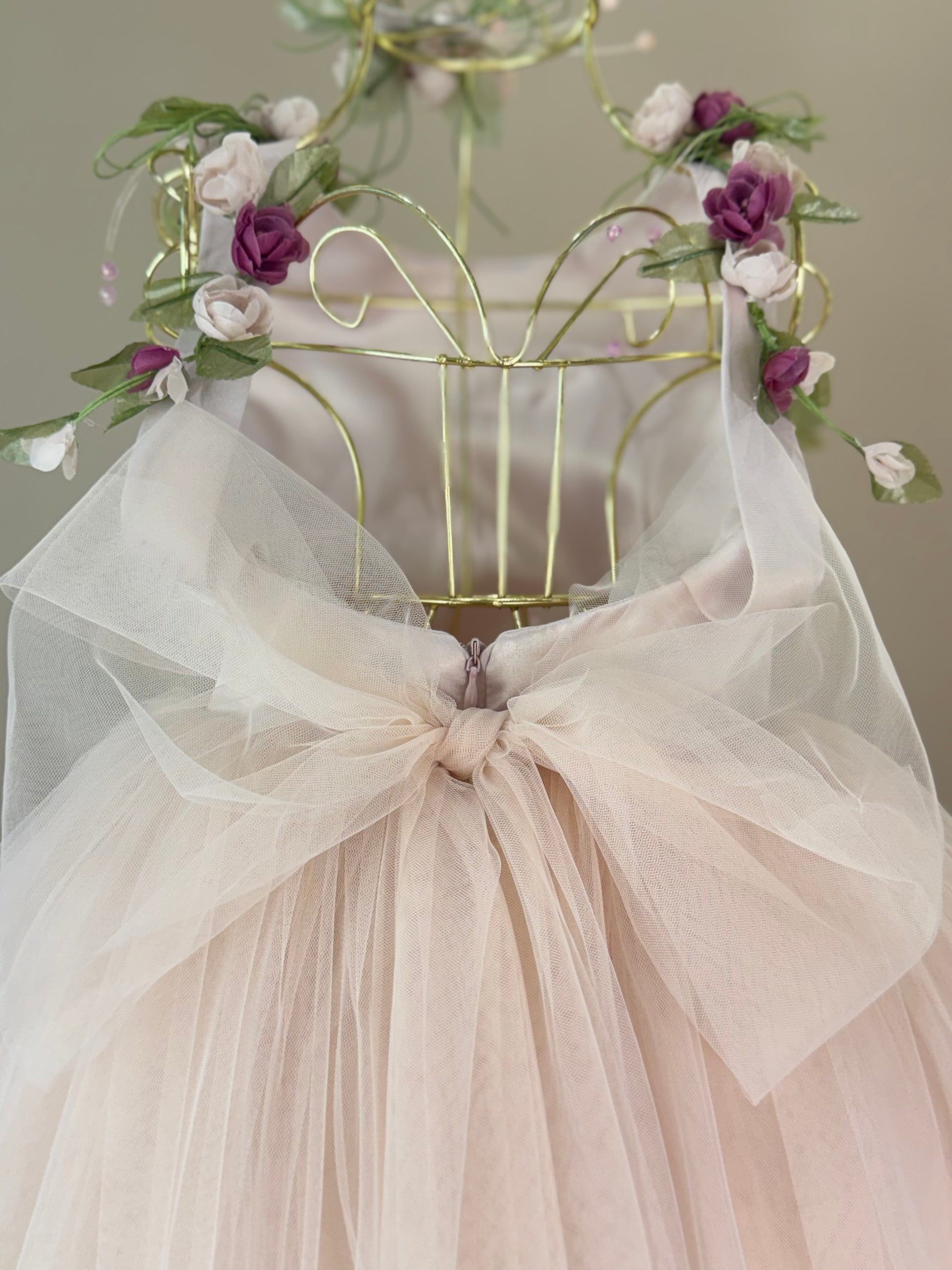 Vestido infantil em tecido premium com acabamento sofisticado. Destaca-se pelas costas trançadas em design exclusivo e flores bordadas à mão que conferem elegância e movimento. Ideal para festas, celebrações e ocasiões especiais. Confeccionado com atenção aos detalhes, oferece conforto e durabilidade. Disponível em tamanhos infantis variados para garantir o ajuste perfeito.
