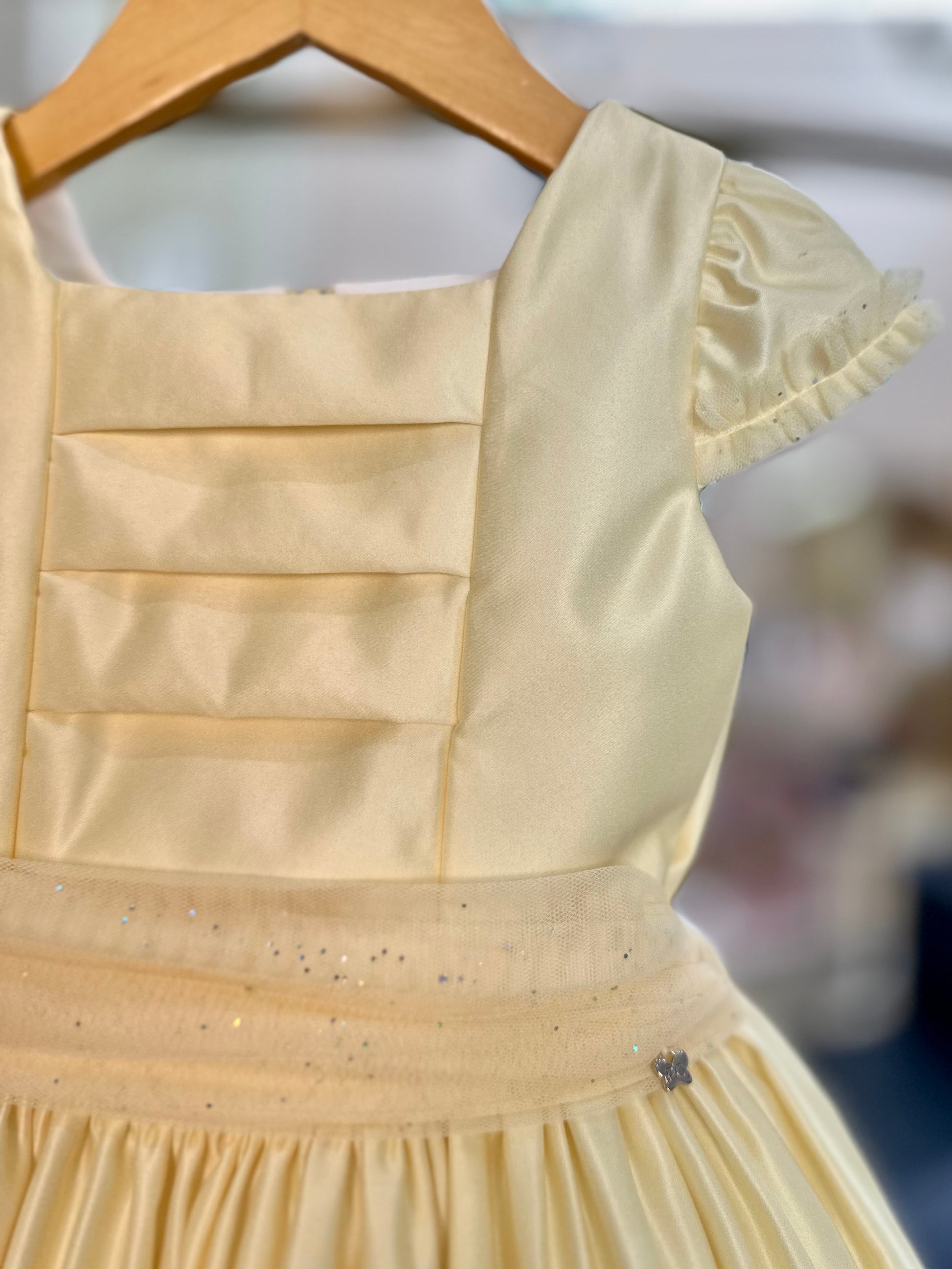 Vestido Infantil Festa Tule Flores Amarelo - Petit Cherie