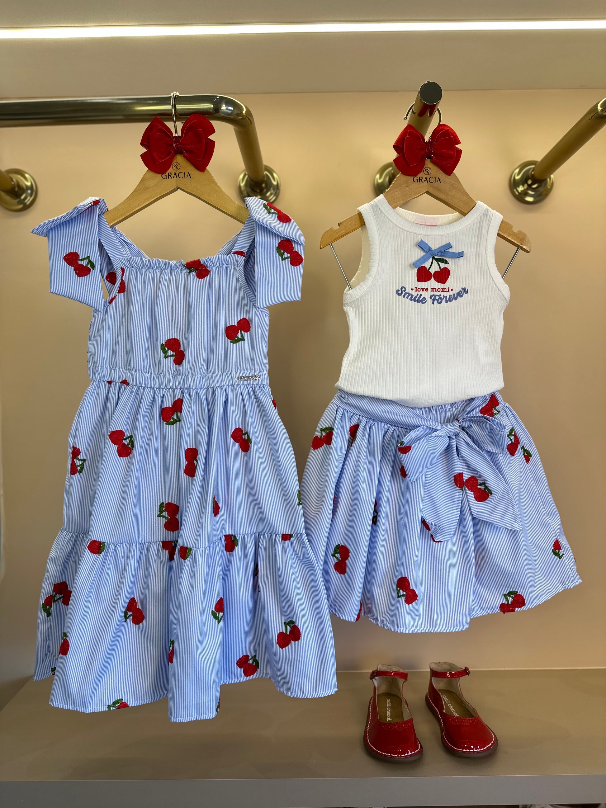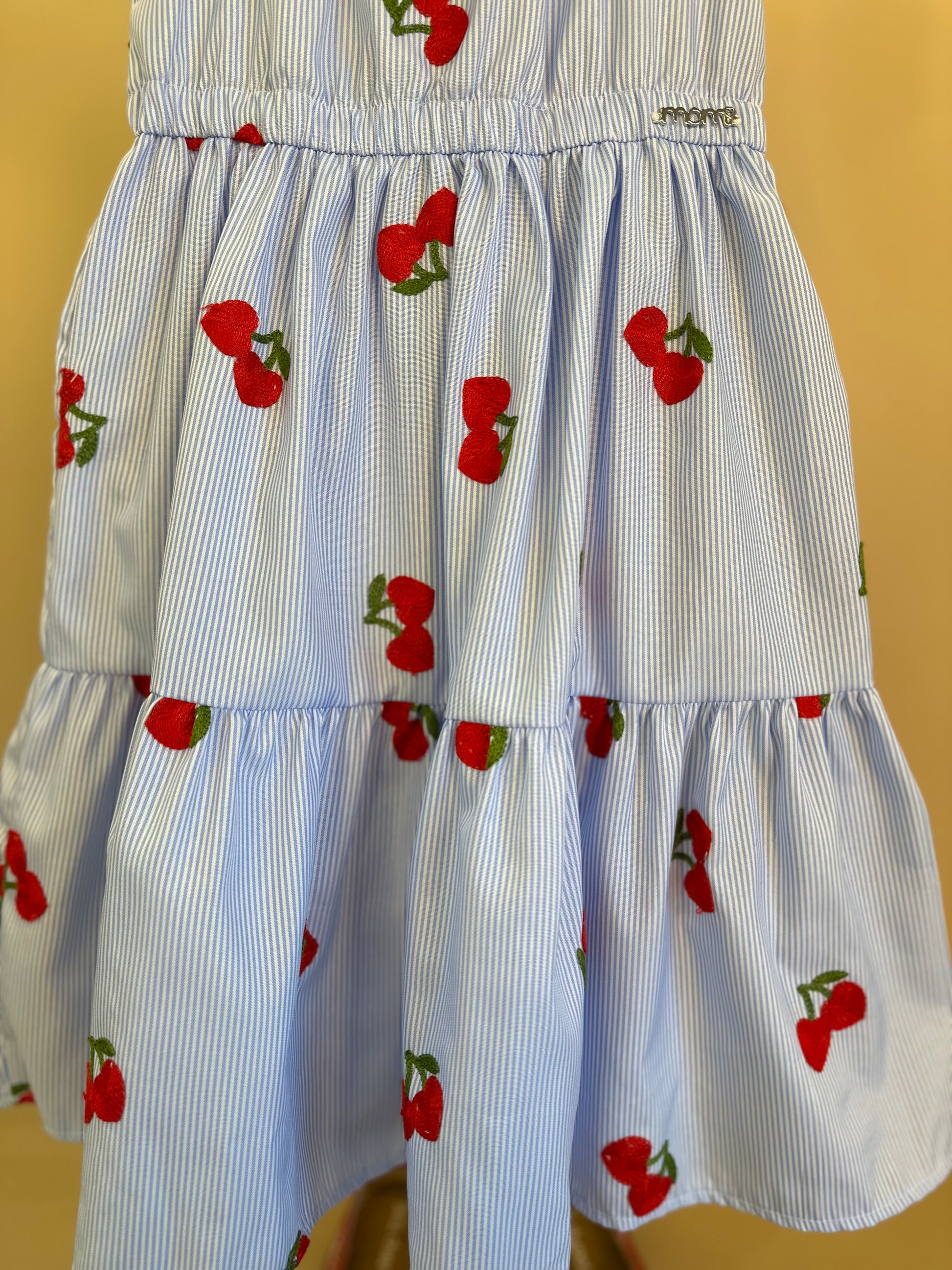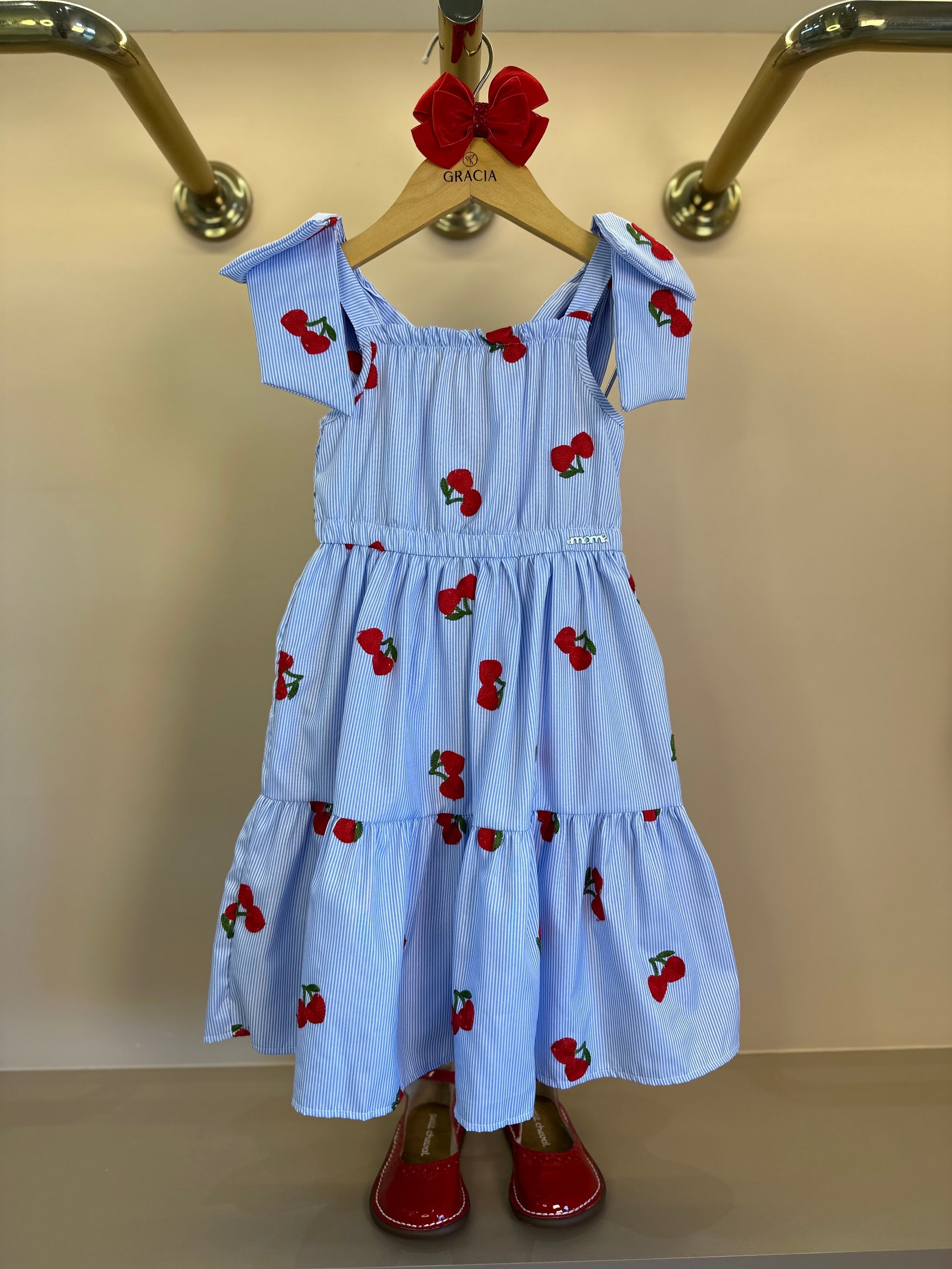 Vestido Infantil Listrado Azul Cerejinhas - Momi