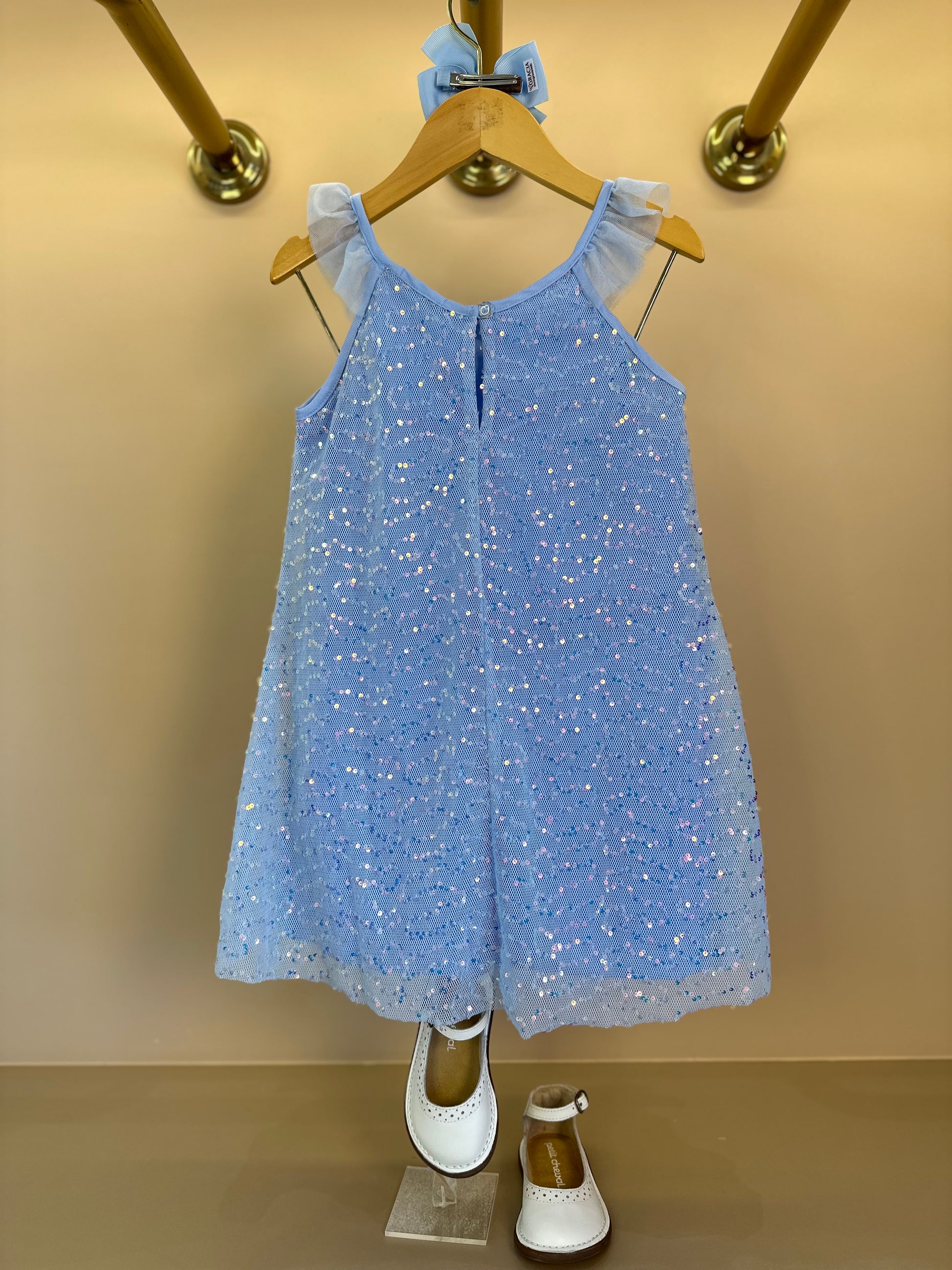 Vestido Infantil Trapézio Tule Paetês Blue - Petit Cherie