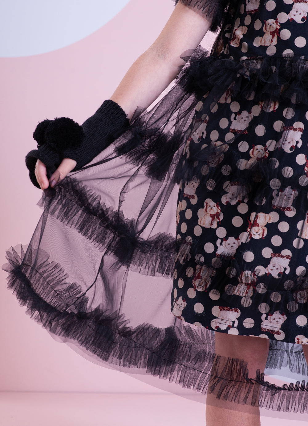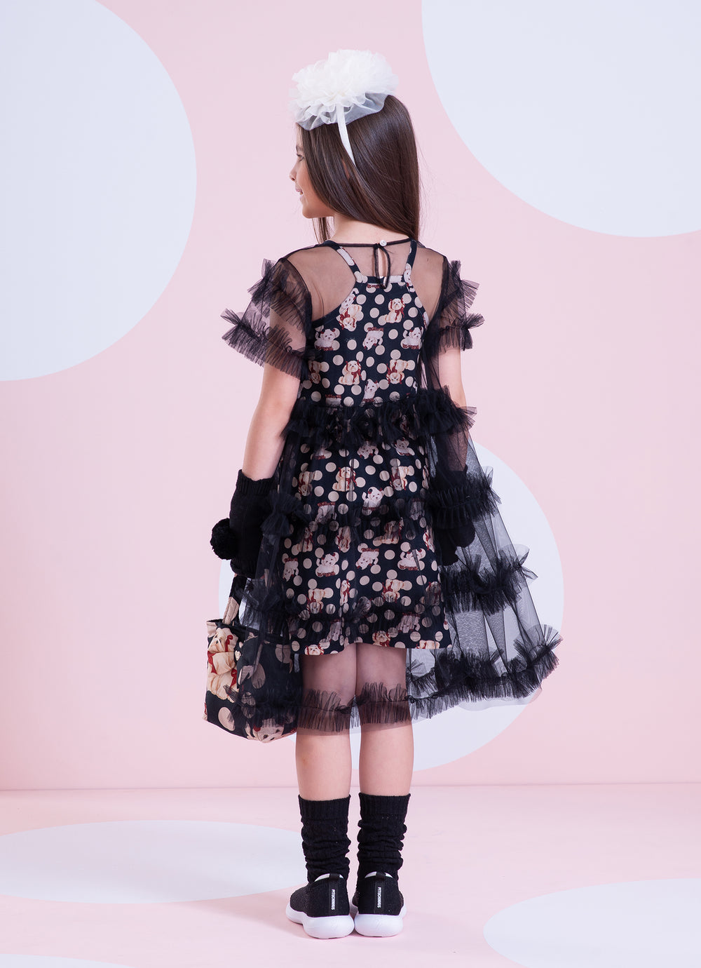 Vestido Infantil Tule Babados Poá Cachorrinhos - Pituchinhus